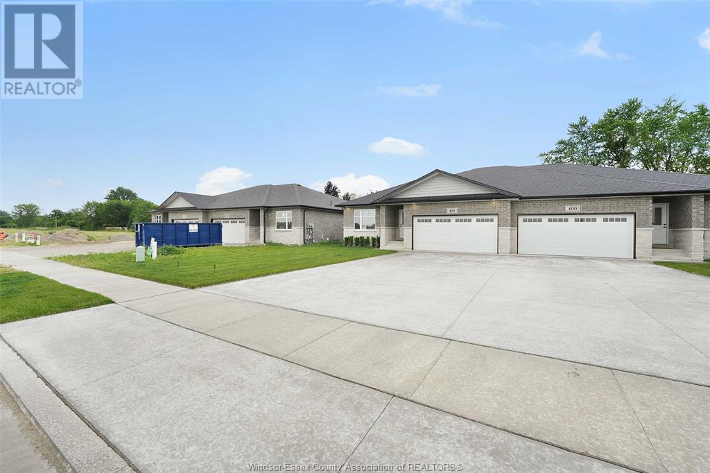 Welcome to Villa Oaks Subdivision, nestled off Martin Lane in beautiful LaSalle, with proximity to waterfront, marinas & new LaSalle Landing. The beautifully crafted approx 1503 sq ft Ranch semi-detached by Orion Homes features 2 spac bdrms w/ 2 well-appointed bathrooms. Primary suite has private full bathroom & large walk-in closet. Main living area boasts an open-concept living/dining area perfect for family gatherings, along w/ a large kitchen area w/ island & walk-in pantry. Kitchen area includes full custom quartz countertops, standard white subway backsplash, undercounter lighting & Whirlpool SS appliance package. Primary & main baths have upgraded quartz countertops. Hardwood flooring flows throughout the living/dining areas, & in both bdrms. Ceramic tile in all wet areas. Add'l upgrades incl Coffered ceiling in living room, custom roller shades & rear covered porch for future deck or patio. Model Home located at 410 Jolly. Included in price is concrete driveway & front sod. (id:58075)