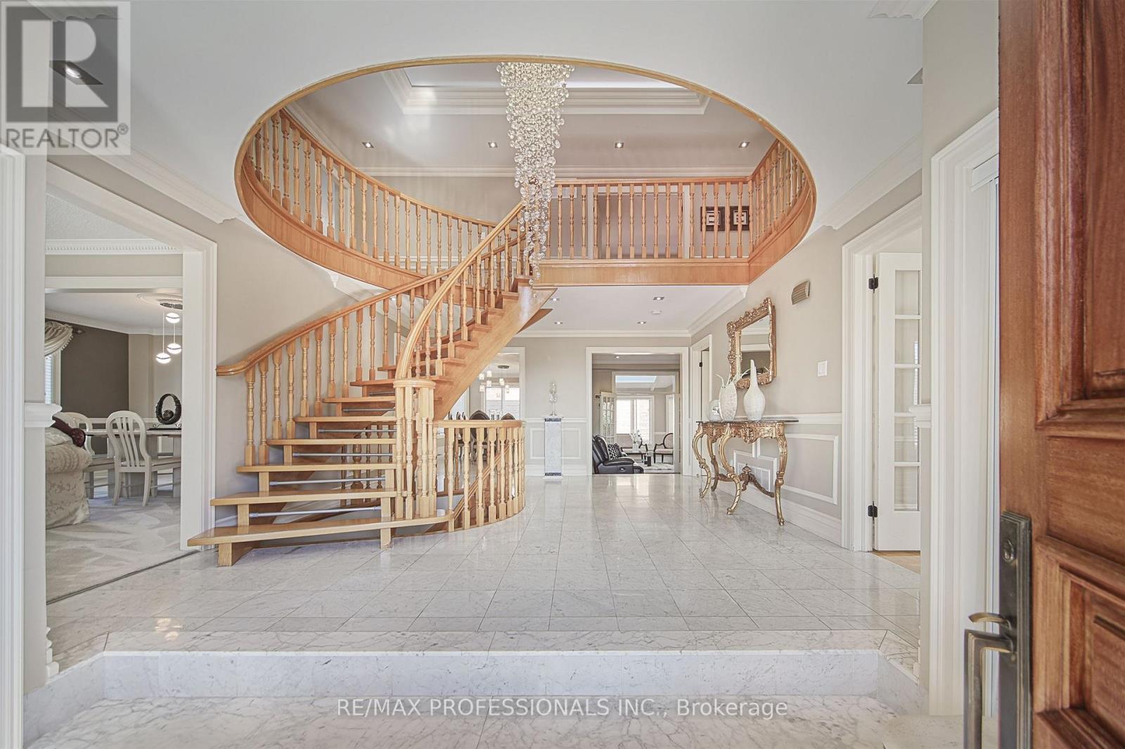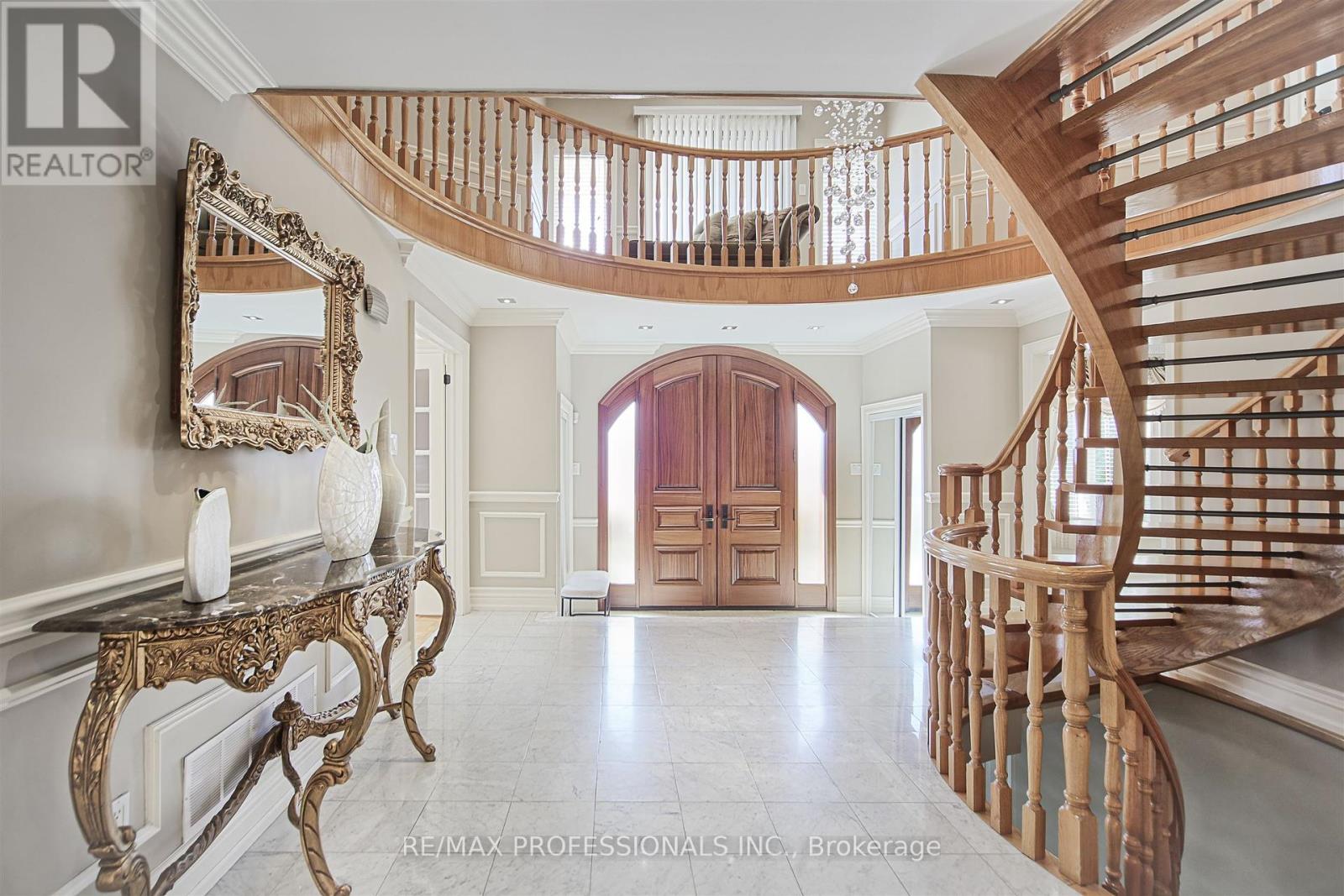 Come see this amazing home at our Open House 2:00 to 4:00 Saturday Nov 29. You have to see it to believe it. Nothing left to be desired. As you approach the front entrance you are greeted and impressed by a 8ft wide 2" thick arched double door front entrance featuring an impressive foyer with an 18 ft high ceiling an incredible chandelier and unbelievable winding oak open stairs leading to the second floor. On the left you have the formal Living and Dining room with broadloom, on the right you have a nice office with parquet floor.The kitchen is huge with all new modern stainless steel appliances, triple door fridge with water and ice supply, built-in oven, built-in microwave, built-in cooktop, built-in dishwasher, Stainless Steel exhaust hood, open concept, with eating counter and overlooking a huge dining room. A large family room with built-in wood burning fireplace, a large sitting area with skylights and walkout to the beautiful rear yard leading to a custom built brick BBQ. Completing the main floor are the laundry room and 2 piece bathroom. Walk up the winding oak stairs 4 bedrooms. The primary bedroom is huge with walk-in closet and a 5 piece ensuite bathroom with heated floor soaker tub and separate shower. Another bedroom with a 3 piece ensuite bathroom. The basement is equally impressive with a huge kitchen all new stainless steel appliances, fridge with ice & water supply stove, electric fireplace, including exhaust hood over stove. Basement also has walkout to a large well maintained side yard. (id:58075)