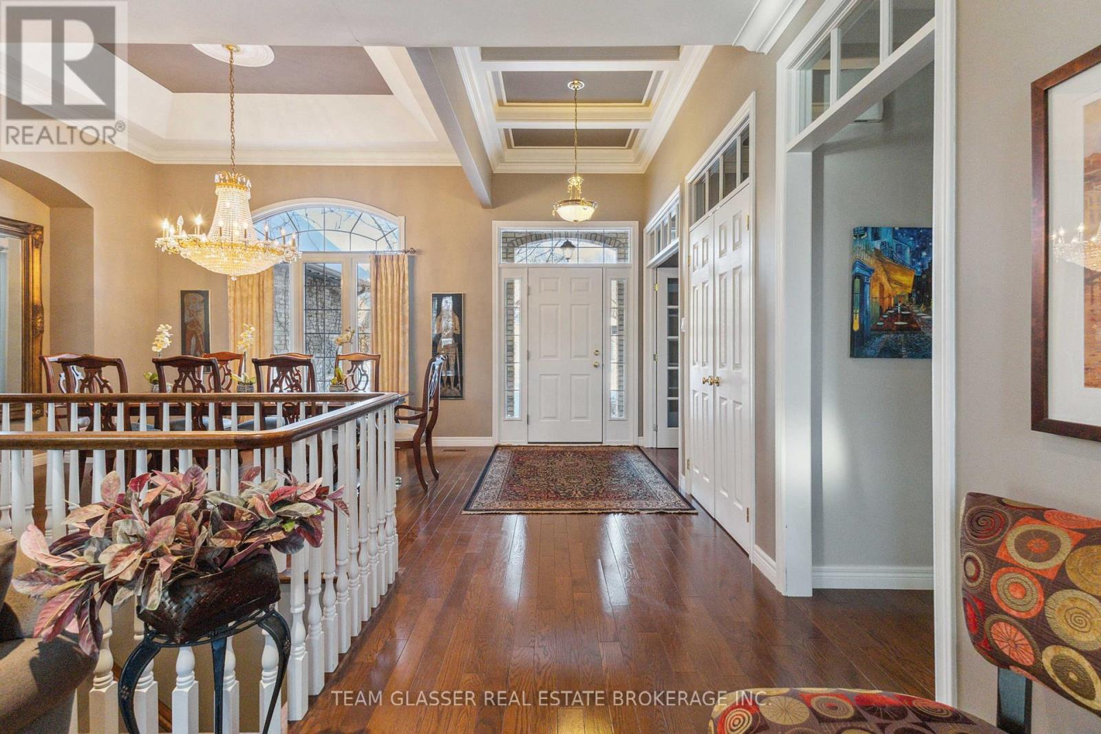 8 Car triple-wide driveway! Incredible value with full basement suite - an executive custom built ranch bungalow in Warbler Woods, with the well-deserved reputation as a best location in London. Approx. 4000 Sqft finished space, tucked away on a whisper quiet 6-house cul-de-sac with almost no traffic. 2 beds plus den on main, 2 beds in the fully finished basement with a second kitchen and laundry suite. Secondary interior staircase leading up to the oversized 2-car garage, private and perfect for every family from kids to in-laws. Gorgeous inside out and year-round, with wrap-around brick exterior, large deck with glass railings, beautifully landscaped with sprinkler system, and complete privacy with mature trees and cedar hedge surrounding the large lot. Beautiful hardwood, stones and glass interior finishes, coffered and cathedral ceilings, transom windows throughout, crown moldings, French doors, numerous and bright windows with California shutters offering tons of natural afternoon lighting from the east-facing backyard. So much to offer, book an in-person experience, welcome home. (id:58075)