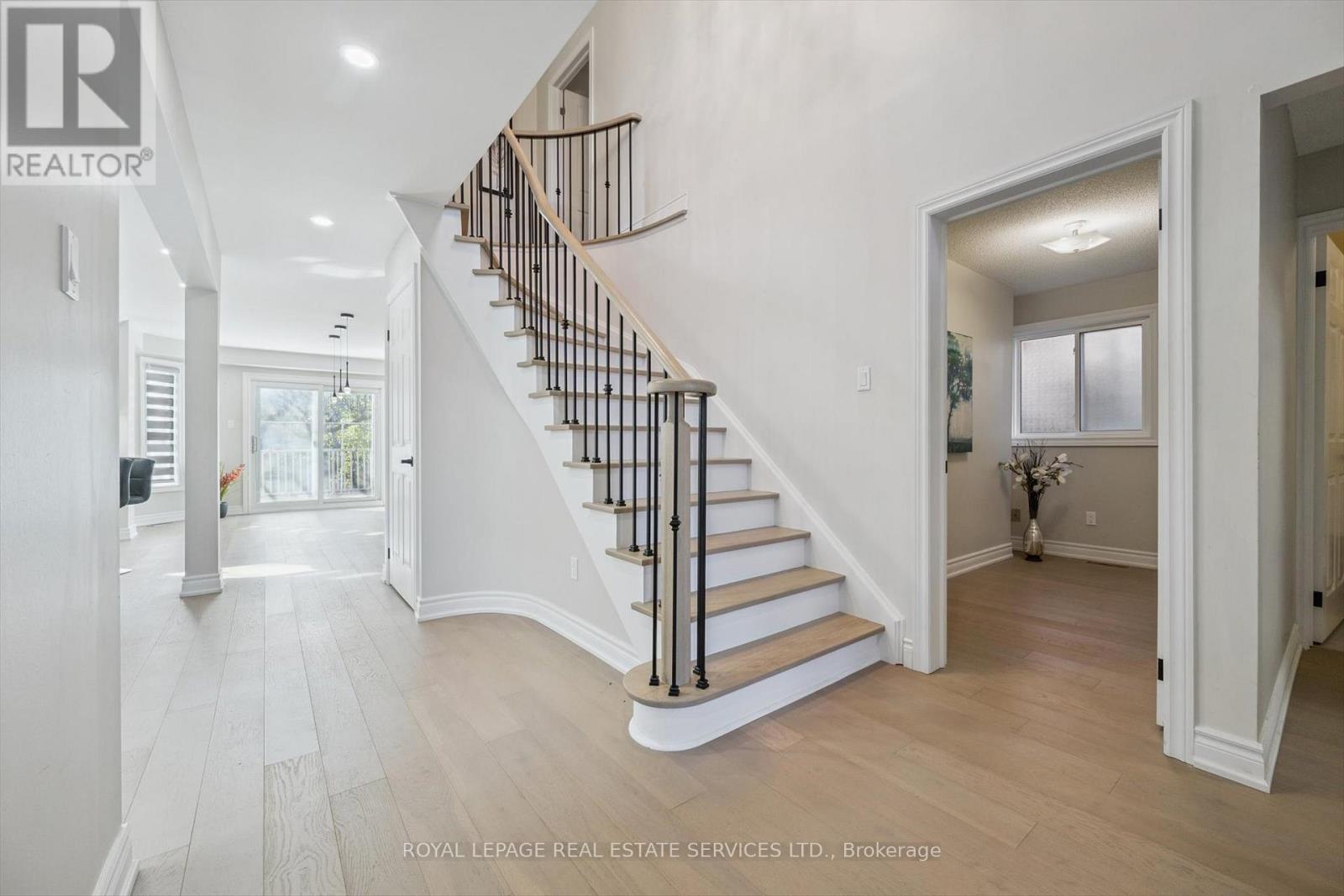 4 Bedroom 4 bathroom fully detached all brick home with separate entrance into finished basement! Centrally located on a quiet family friendly crescent. True pride of ownership with many recent upgrades: Main floor completely renovated in 2024 - Entertainers dream kitchen complete with 9.5 foot long centre island!! Breakfast bar seats 6 comfortably. Quartz counters and backsplash - soft close cabinets - under valance lighting, top of the line stainless steel appliances - hardly used. Smooth ceilings on main floor with upgraded lighting and pot ligts, engineered hardwood floors on main level and upper hallway. Upgraded hardwood stairs and wrought iron pickets. Open Concept floor plan ideal for entertaining and growing family. Large kitchen eating area with walk out to backyard deck and open to family room with gas fireplace with gorgeous stone facade. Upper level boasts 4 large bedrooms, double door entry into primary bedroom renovated in 2021 along with the private 4 piece ensuite. Two staircases lead to basement. One staircase leads from side door and garage, great for adult children, nanny or in-law suite.Other upgrades include windows done in 2021, new front door, side door and glass sliding door alldone in 2024, See attachment for full list of home features and upgrades - Centrally located close to Square One, great highway access and public transit. Very good school district - Nothing to do but move in! (id:58075)