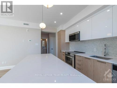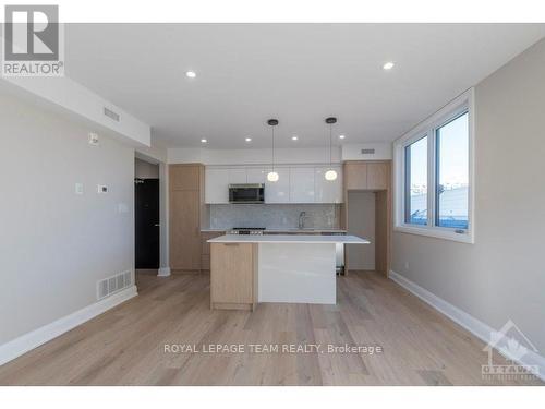 Welcome to this newly constructed 1 bedroom, 1 bathroom, top floor apartment with in-unit laundry. Bright open-concept living, dining room, and kitchen with top-of-the-line finishes throughout. High ceilings, oversized windows, engineered wide plank vinyl flooring, quartz countertops, marble backsplash, and custom kitchen cabinetry are just some of the great design features. This steel and concrete building with solid core doors offer great sound insulation. A shared rooftop terrace with picnic tables, bbq, and great views available to enjoy in the warmer months. Centrally located close to all the great amenities our downtown has to offer. Walking distance to restaurants, shops, the Byward Market, parliament, easy highway access, and close to both universities. No on-site parking is available. Bicycle storage is available. City street parking permits and nearby parking lots may be available at an additional fee. Must provide rental application, proof of employment, and credit score. Available for occupancy February 1st 2026. (id:58075)