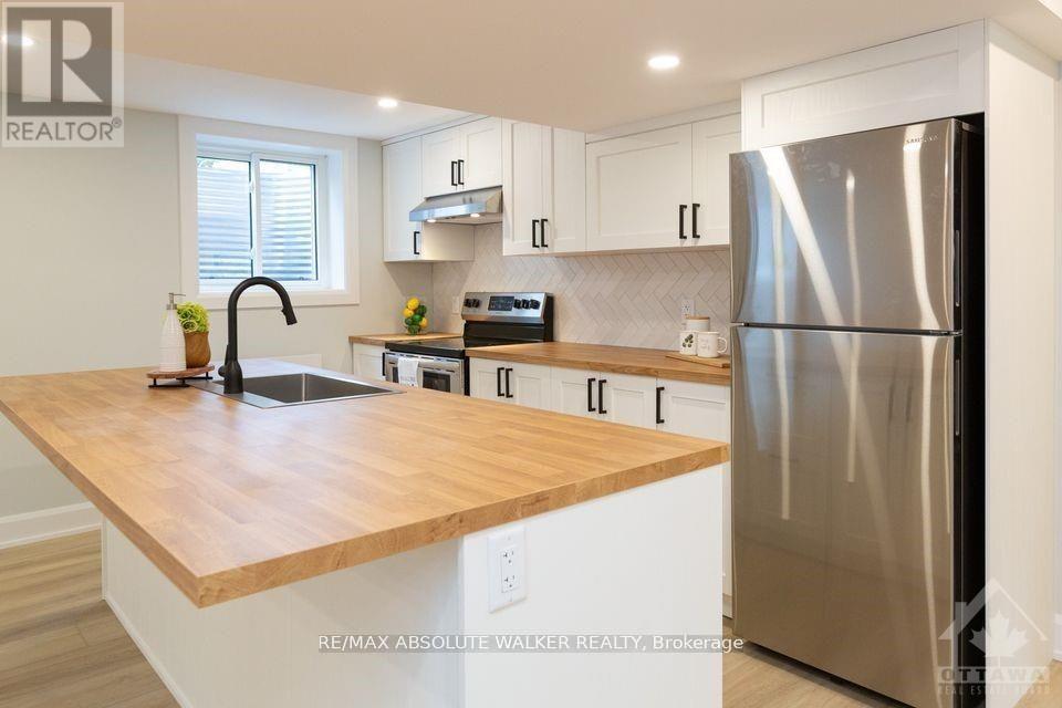 LEGAL 2 BEDROOM LOWER LEVEL APARTMENT IN BLACKBURN HAMLET. Perfect for a professional couple, this beautifully finished apartment sits on an impressive 222-ft deep lot in the heart of Blackburn Hamlet. Enjoy a sun-filled, open-concept layout with high-end finishes throughout, including a stunning 8-foot kitchen island, newer appliances, and a modern 3-piece bathroom. Convenience is built in with a separate laundry room featuring an additional sink, newer washer and dryer, and plenty of storage. Extra windows have been added to enhance natural light, making the space feel bright and inviting. Step outside to a private backyard shared with the upper unit tenant. The unit includes a dedicated driveway parking area that can accommodate two cars, with ample street parking available. Tenant pays hydro. Landlord covers water, snow removal from the driveway, and grass cutting. If you love a quiet, nature-focused lifestyle, this location is unbeatable. Just a short walk to the grocery store, coffee shop, banks, parks, and more. All this, with only a minutes-long drive to downtown Ottawa. (id:58075)