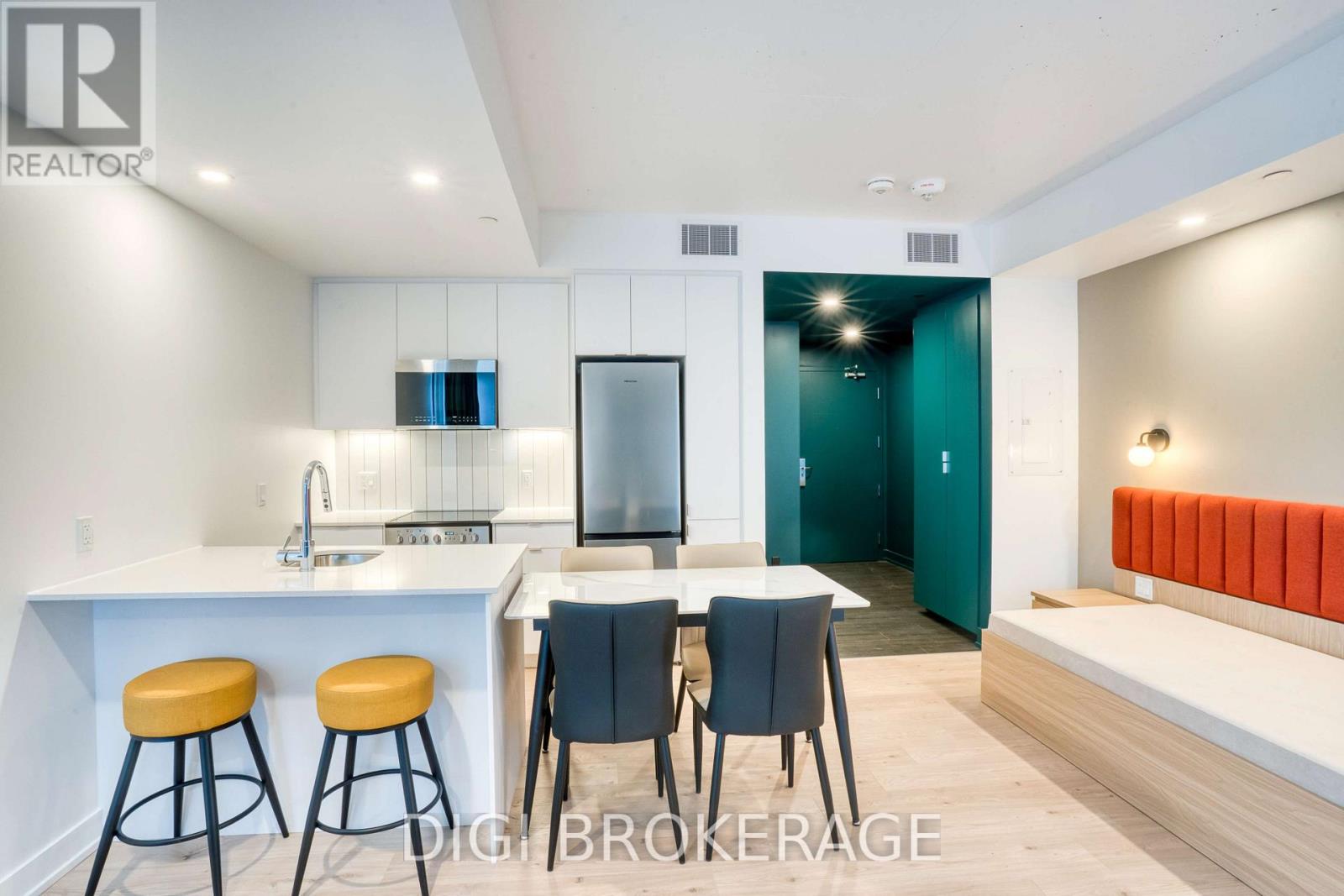 **Special Rent Promo - Up to 3 Months' Free Rent + $1,000 New Year Bonus** Welcome to Luxo, Ottawa's newest upscale residence, where contemporary comfort meets resort-style amenities. Designed for those who value convenience and elevated living, Luxo offers an exceptional lifestyle with world-class features including a fully equipped fitness center, dedicated yoga studio, and a stunning hotel-inspired indoor pool perfect for lap swimming. Residents enjoy access to an elegant social lounge complete with a bar and billiards, thoughtfully designed co-working spaces, and beautifully furnished guest suites to host friends and family with ease. The pet-friendly, non-smoking environment ensures a welcoming, modern community just steps from Cyrville LRT station, connecting you to the best of Ottawa's shopping, dining, and outdoor spaces. This fully furnished 365 sq ft studio suite is perfect for modern living. Expansive floor-to-ceiling windows bathe the space in natural light, complementing the sleek décor and high-end finishes. The open-concept layout features a contemporary kitchen with stainless steel appliances, a stylishly furnished living area, and in-unit laundry for added convenience. The spacious bathroom offers a glass-enclosed shower/tub combo, and a private balcony extends your living space ideal for morning coffee or unwinding at the end of the day. Live smart, live stylish, discover the Luxo lifestyle. (id:58075)