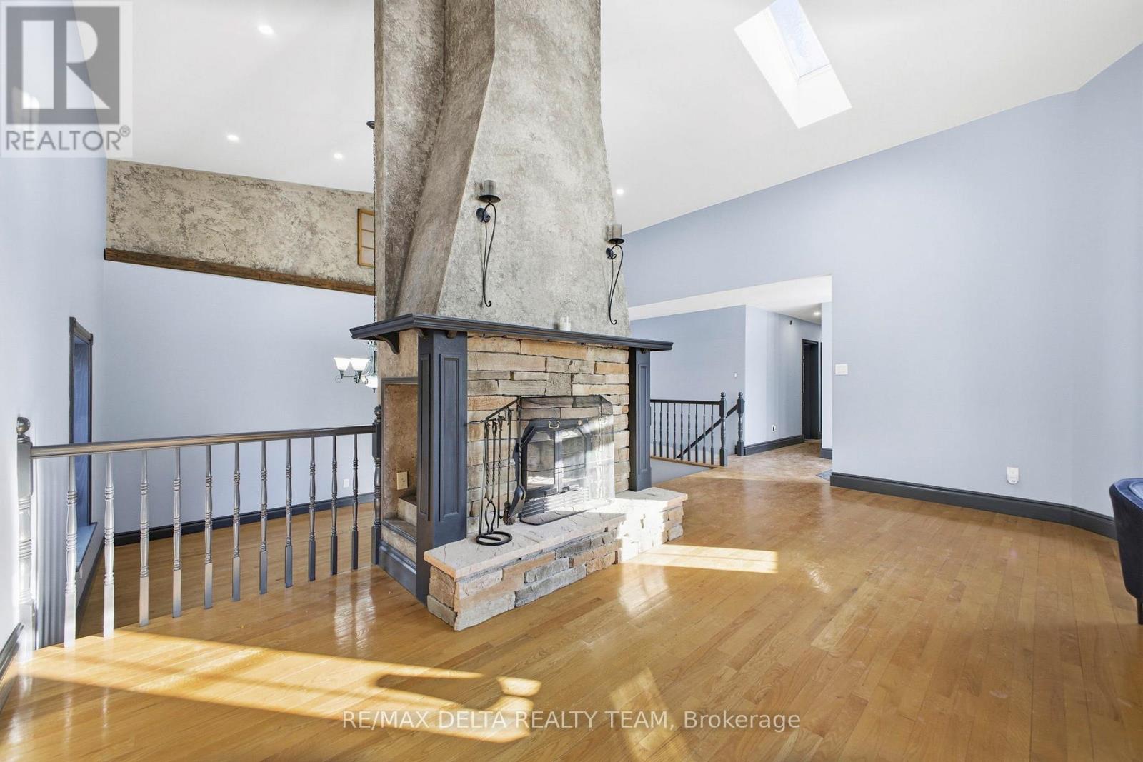 Welcome to 1653 Lakeshore Drive in Greely - a rare waterfront retreat that offers a level of peace and privacy you simply don't find anymore within city limits. Set on an expansive 163' x 304' lot (one full acre), this property feels open, quiet, and completely removed from the noise of everyday life. The lake setting is beautifully natural - not overly manicured or artificial. It's calm, organic, and surrounded by mature trees and wildlife, creating a deeply relaxing environment that feels grounding and restorative. Mornings are slow, evenings are quiet, and the world feels a little farther away here - in the best way. Inside, the main level is truly striking. The living and dining area features soaring 20-foot ceilings and a centered wood-burning fireplace that anchors the space and creates an incredible focal point. It's warm, inviting, and impressive without feeling overdone - the kind of room that instantly feels like home. This property is a perfect canvas for customization - a dream for someone who wants to create something special. The lower level is nearly complete, ready for finishing touches that could transform it into a games room, gym, home theatre, or guest space. Located on a quiet, family-friendly street with a nearby park and surrounded by beautiful homes, this is ideal for a family seeking tranquility, space, and waterfront living - all while staying connected to the city. This isn't about flash. It's about calm, space, and breathing room. (id:58075)