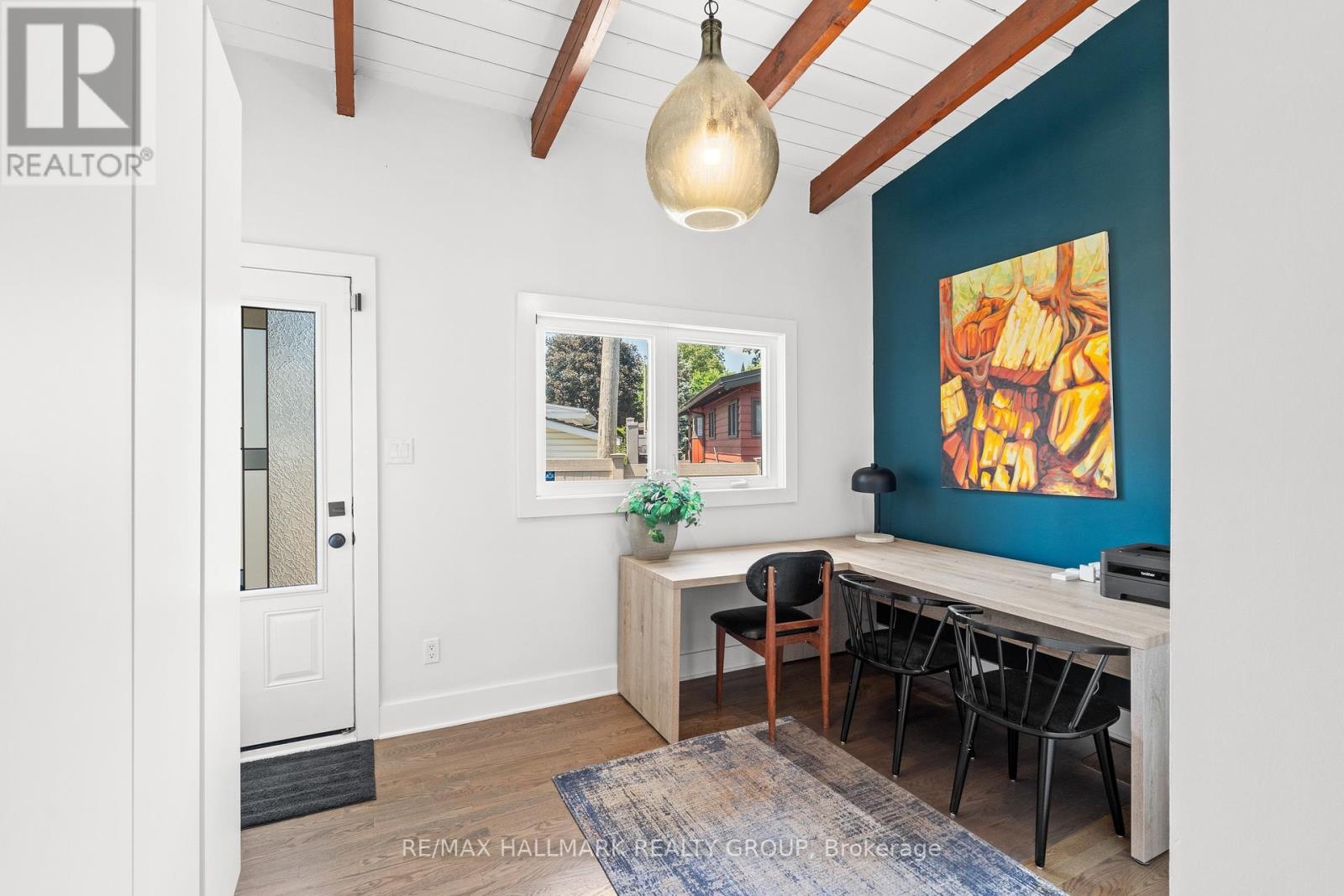 FULLY FURNISHED - ALL INCLUSIVE UTILITIES - Chalmers Mid Century Modern Bungalow in the heart of prestigious Alta Vista! 4 bed/3 FULL BATH is pro designed, making it the IDEAL TURN-KEY residence! Be welcomed into this architectural gem with soaring 12 ft ceilings w/ EXPOSED CEDAR BEAMS spanning the entire main-entertaining space! The OPEN CONCEPT kitchen feat. HIGH END SS APPLIANCES complete w/ GAS RANGE, & BUILT-IN CONVECTION OVEN & MICRO! Cozy up to TWO WOOD-BURNING FIREPLACES! The MAIN FL DEN is the ideal work from home office! The Master Retreat is SPACIOUS w/ DBL CLOSETS & DBLE SINK ENSUITE! The lower level feat. an additional 1600 sqft of living space: family room, full bathroom, 2nd mini Office, rec/play room, 2 STORAGE ROOMS & spacious LAUNDRY w/ FREEZER & AMPLE STORAGE! Walk to 3 hospitals: CHEO, Riverside & General. 1 km from Rapid Transit Station, 10 min. to D-TOWN; TOP Schools and dog-friendly Grasshopper Park 700m walk! (id:58075)