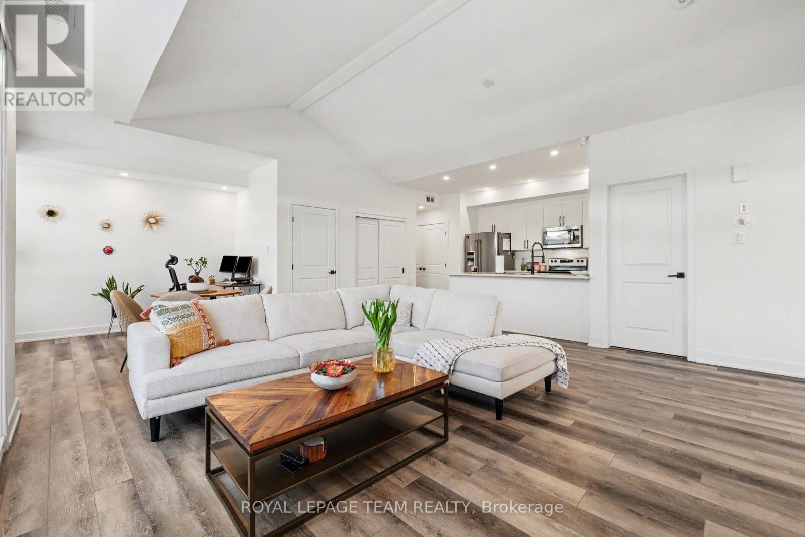 Experience modern condo living at its finest in this premium, upgraded TOP-FLOOR corner unit ideally situated next to a park. This spacious 2-bedroom + den, 2 full bathroom residence features an open-concept layout with a stylish loft-inspired feel, highlighted by cathedral ceilings. This is Claridge's largest Urban Zen Flats model, offering an impressive 1,225 sq. ft. of thoughtfully designed living space. The unit is equipped with SMART home features throughout, including smart LED pot lights, remote-controlled blinds, smart thermostat, smart lock, and video doorbell. Large windows flood the home with natural light, while neutral finishes create a clean, contemporary aesthetic. The chef-inspired kitchen showcases quartz countertops, sleek white cabinetry, a complementary tile backsplash, stainless steel appliances, and durable ceramic tile flooring.A versatile open den provides the perfect space for a home office or study area. Step outside to your private balcony, ideal for morning coffee or evening relaxation.Conveniently located near Terry Fox Drive, with quick access to the Queensway (Hwy 417) and Highway 416, and close to parks, schools, public transit, and shopping-this unit offers both comfort and exceptional accessibility. Available as of April 1st. (id:58075)