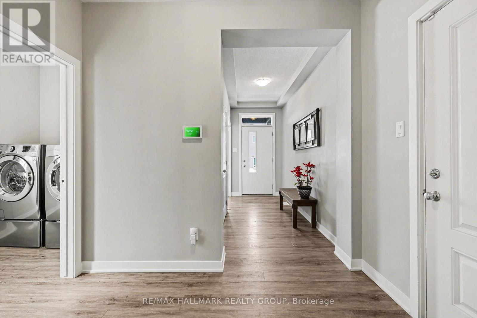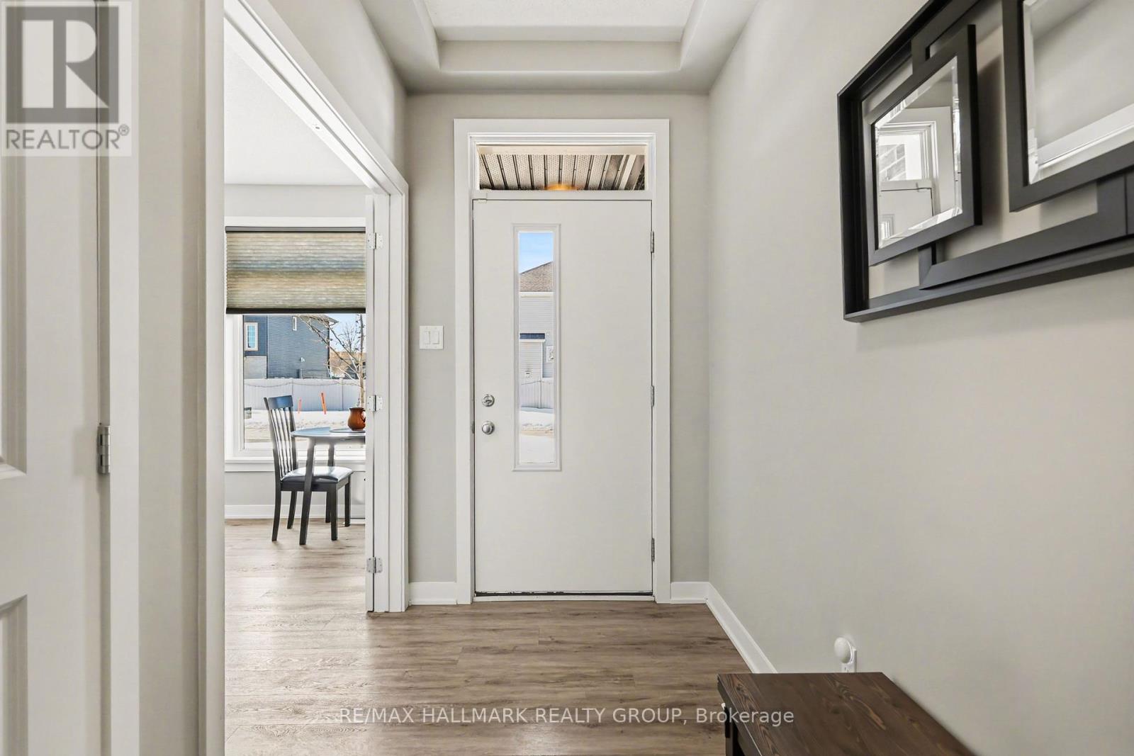 Rare find in Miller's Crossing! This Cardel-built bungalow perfectly balances high-end aesthetics with thoughtful, barrier-free design. Boasting an expansive floor plan with 9ft ceilings and premium luxury vinyl plank (LVP) flooring, the home offers a bright, seamless flow. Designed for ease of movement, the interior features oversized doorways and wide hallways for full accessibility. The oversized front walk in closet is a dream making you wonder, why doesn't every home have this feature! The heart of the home is a sun-drenched kitchen with white quartz counters, upgraded appliances, tile backsplash, and a functional island with breakfast bar. The kitchen flows into a bright dining area with direct access to a covered porch-ideal for year-round barbecuing. The adjacent family room is anchored by a cozy gas fireplace and framed by massive windows. The primary suite is a true sanctuary with remote-controlled blinds, a large accessible walk-in closet, and a spa-like ensuite with a custom tile roll-in shower. A versatile front bedroom with French doors currently serves as a professional home office. The main-floor laundry room provides incredible utility with extensive built-in pantry shelving. The builder-finished lower level significantly expands your space, offering a sprawling recreation room, two additional large bedrooms, and a third full bath. Hobbyists will appreciate the massive storage area and lots of options if you want a workshop space. Home equipped with full house Generac generator. The exterior is professionally landscaped, featuring a quaint front stone patio for morning tea and a large stone patio within the fully fenced backyard and convenient storage shed. Ideally situated steps from a large park, outdoor rink, and splash pad. Enjoy the best of Carleton Place: a vibrant downtown with boutique shops, award-winning dining, scenic river trails, and an easy commute to Ottawa. This is more than a home; it's a lifestyle of comfort and convenience. (id:58075)
