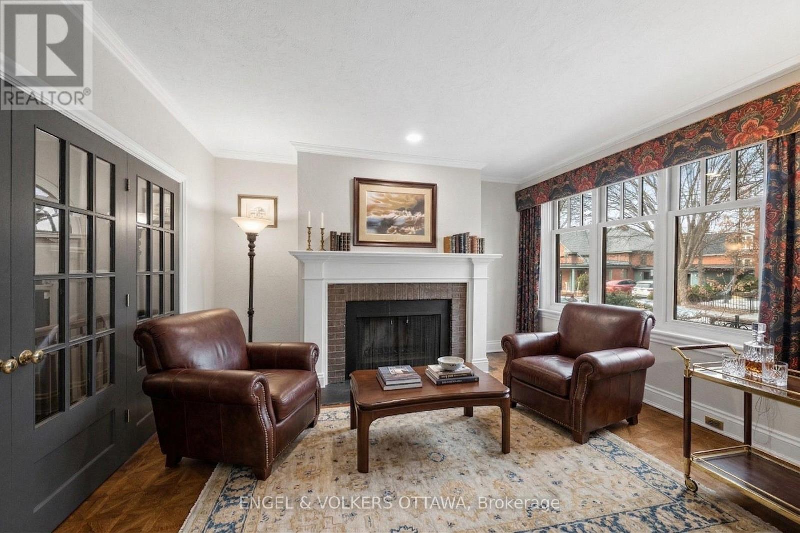 Rarely offered in the heart of New Edinburgh, 105 Stanley Avenue is a 3-storey architect-designed red-brick residence backing directly onto parkland along the Rideau River, offering exceptional privacy and unobstructed views stretching toward the Peace Tower. Set on a quiet, tree-lined street, this home combines timeless architecture with a thoughtfully designed multi-level layout and over 3,400 sq.ft. of living space. The main level welcomes with a gracious vestibule and rich hardwood flooring, leading to a private den anchored by a wood-burning fireplace. A rare main-floor guest suite provides excellent flexibility, complete with a renovated ensuite, custom storage, and direct access to a private terrace. The second level serves as the primary living space, designed to maximize light and views. A grand dining room with a striking cathedral-style stained glass feature flows into an expansive living room with custom millwork, a fireplace, and a full wall of windows overlooking the river and surrounding parkland. The kitchen features a functional, elegant layout with granite countertops, premium appliances, a central island, and an adjoining sitting area with access to an outdoor balcony. The top floor is dedicated to the primary retreat, featuring a spacious bedroom with panoramic water views, a private balcony, and a fully renovated spa-inspired ensuite with a freestanding soaker tub, steam shower, double vanity, and heated floors. The fully finished lower level adds a versatile living space with large windows, a recreation area, a full bathroom, and laundry-ideal for guests, a home gym, or potential in-law suite. Outdoor spaces include multiple terraces and balconies designed to capture the natural surroundings, while the double-car garage has an EV charger. Located steps to river pathways, parks, and minutes to downtown, this is a unique opportunity to own a signature home in one of Ottawa's most prestigious neighbourhoods. (id:58075)