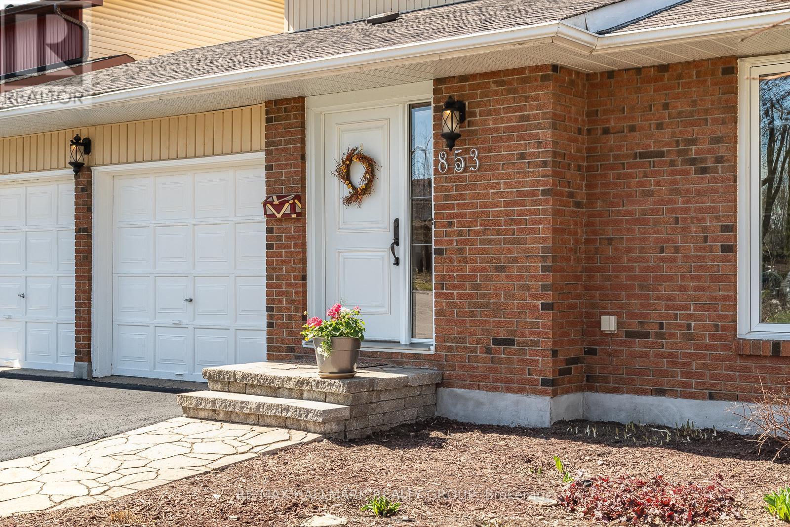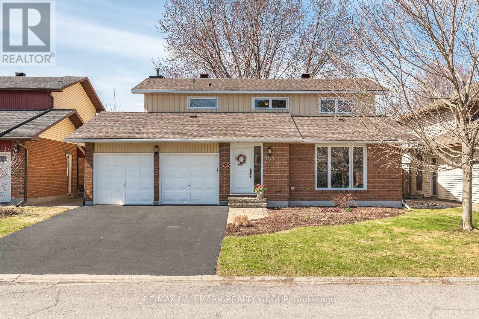 853 ACADIAN GARDENS is a beautifully maintained and updated 2 storey, 4 bedroom single detached home, nestled on a quiet, local traffic only, mature tree lined crescent, BACKING ONTO PARKLAND just steps away from the Ottawa River Pathway, perfect for cycling, walking, and cross-country skiing. Enjoy this practical floor plan perfect for both entertaining and everyday family living, featuring an enclosed front foyer, a custom hickory staircase and railings, formal living and dining rooms with natural finished oak floors, and a bright open concept kitchen/eating area/family room with patio doors leading to a spacious western red cedar deck. The renovated kitchen is designed for functionality, offering a breakfast bar, granite countertops, ceramic backsplash, and enhanced by pot and task lighting. The family room boasts a cozy wood burning fireplace, and the main level also includes a powder room and a laundry room/mudroom with inside access to the double attached garage. Upstairs, you'll find four generously sized bedrooms, with the primary suite featuring a wood burning fireplace, walk-in closet, and a renovated 3-piece ensuite. Three sun-filled bedrooms with hickory wood flooring throughout and a 4 piece bathroom round out the upper level. The finished lower level offers a massive recreation room with high ceilings, gym space, and a relaxing entertainment zone, as well as a large unfinished utility room with ample shelving. Step outside to your southwest facing backyard summer oasis, complete with expansive decking, hot tub, heated above ground pool and shed, fully enclosed by a stunning wood privacy fence with a rich, natural cedar tone. The home features additional updates including crown mouldings, pot lighting, modernized closet doors, and has been freshly painted in tasteful earth tones. With easy access to Highway 174, amenities, reputable schools, parks, and the future LRT, this premium location offers both convenience and lifestyle - Welcome Home! (id:58075)