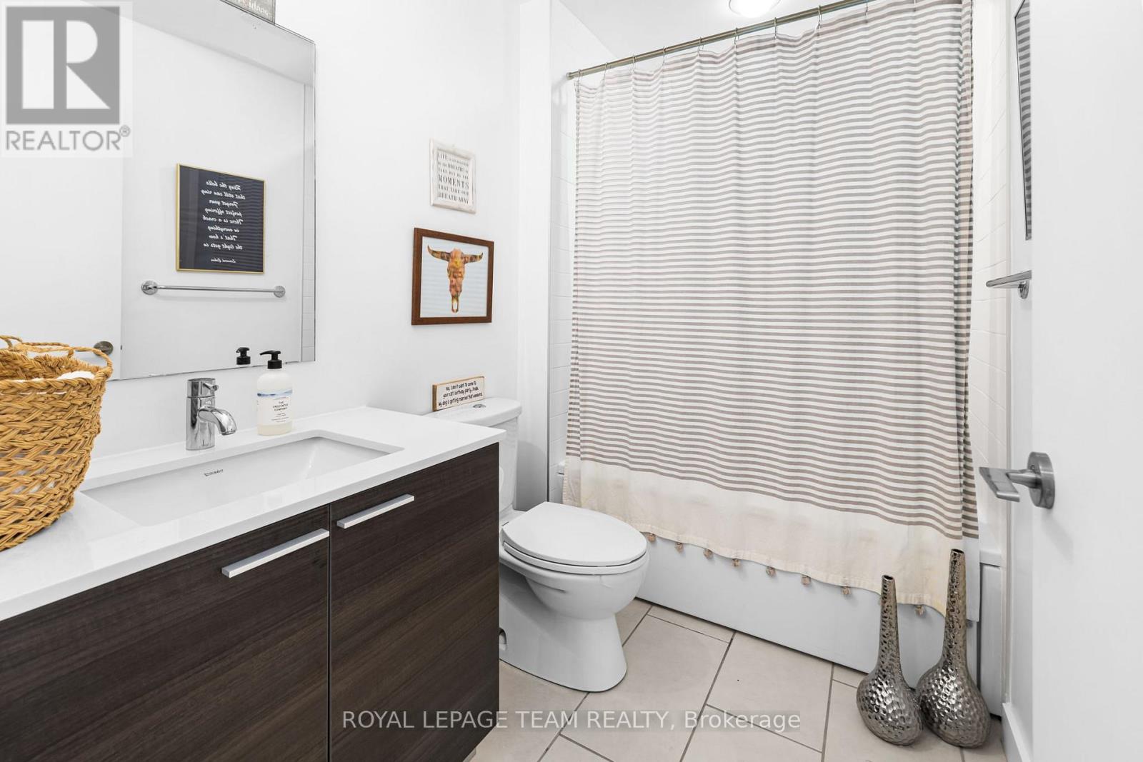 Live in the heart of Centretown at Central 1 in this striking industrial-style loft offering a rare blend of character and functionality. Defined by exposed concrete ceilings, ductwork, and a full wall of windows, this open-concept 1 bed + den layout is filled with natural light and extends to a full-length private balcony, perfect for both everyday living and entertaining. The modern kitchen features quartz countertops, stainless steel appliances, upgraded cabinetry, and a large island that anchors the space. A glass-partitioned bedroom creates architectural separation, while a versatile den with sliding barn door and double closet offers flexible space for a home office or guest area. This well-designed unit includes two full bathrooms with deep soaker tubs, generous closet space, and in-unit laundry with additional storage. A new refrigerator will be installed for the next occupant. Located in a LEED Gold-certified building with premium amenities including concierge service, fitness centre, party room, courtyard with BBQ, and car wash station. Parking and lockers are available for rent within the building. Steps to Ottawa's best dining, cafés, shopping, and transit. Preferred occupancy June 1st. (id:58075)