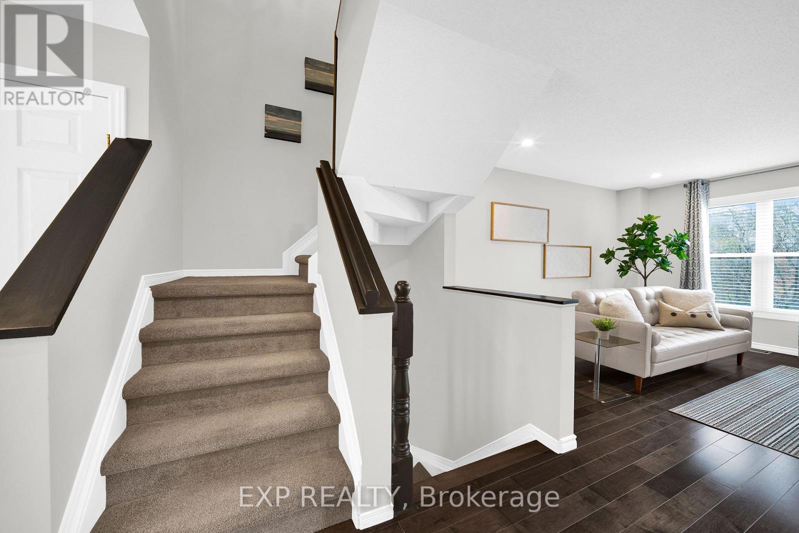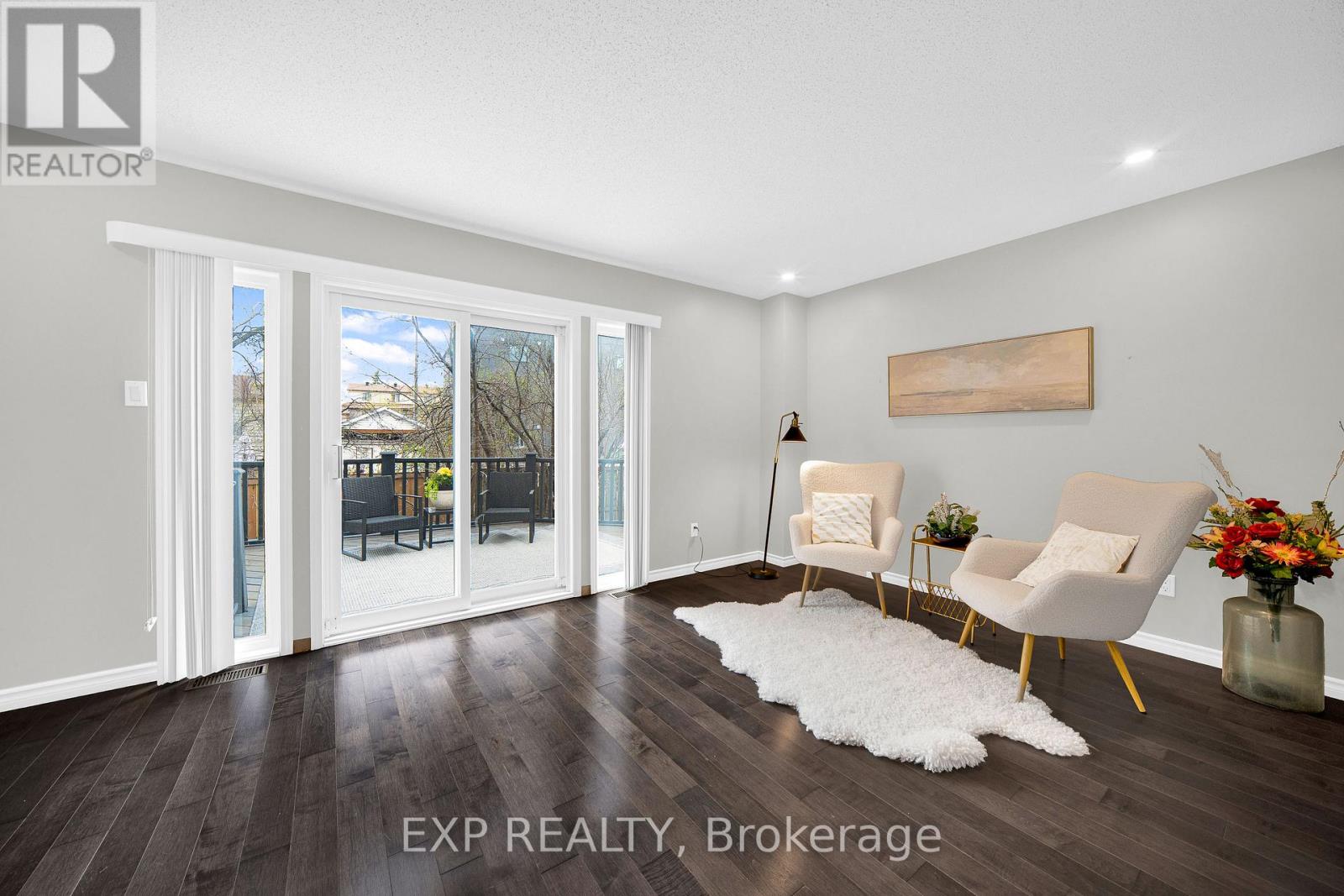 Welcome to this BEAUTIFULLY MAINTAINED END UNIT TOWNHOME with HARDWOOD FLOORS THROUGHOUT that truly HITS DIFFERENT from the moment you arrive, featuring BRAND NEW INTERLOCKING STEPS and MODERN BRICK FACADE that set the tone. The main floor offers a SPACIOUS FAMILY ROOM that walks out to a REFRESHED DECK framed by MATURE TREES, giving you that rare mix of LIGHT and PRIVACY. Head up to the second level and you get that instant WOW MOMENT with a BRIGHT, OPEN CONCEPT layout and POT LIGHTS throughout, anchored by a STONE ACCENT WALL w/GAS FIREPLACE and LARGE WINDOWS that bring the outside in. The kitchen flips the vibe in the best way, SOUTH FACING and SUN FILLED with LIGHT TONES, QUARTZ COUNTERS, STAINLESS STEEL APPLIANCES, and laundry conveniently nearby. The top floor features THREE GENEROUS BEDROOMS and TWO FULL BATHROOMS, including an UPDATED ENSUITE and MAIN BATH. With clear PRIDE OF OWNERSHIP evident throughout, this home is truly MOVE IN READY and perfectly located just minutes to the LRT, with QUICK ACCESS to the highway and downtown, close to the GENERAL HOSPITAL, Ottawa Stadium and surrounded by amenities including ST LAURENT SHOPPING CENTRE and TRAIN YARDS for all your everyday needs. (id:58075)