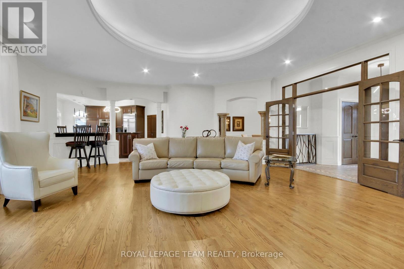 Welcome to a rare offering on the iconic Rideau River. A custom-built stone bungalow that exemplifies timeless elegance, superior craftsmanship, and an unmatched waterfront lifestyle in the heart of Manotick. Set on a prestigious riverfront lot, this exceptional residence delivers resort-style living with a permanent private dock and access to 26 miles of scenic boating between locks. Whether it's morning paddles, sunset swims, or cruising to nearby dining, this property transforms everyday living into an extraordinary experience. Inside, sophistication meets comfort. The main level showcases rich oak hardwood flooring, a striking marble-clad gas fireplace, and a beautifully appointed open-concept gourmet kitchen complete with granite countertops and premium finishes. Two generously sized bedrooms each feature their own spa-inspired ensuite, offering privacy and indulgence on the main floor. The fully finished walkout lower level extends the home's versatility and luxury, featuring two additional bedrooms, a spacious designer bathroom, and a second full kitchen-ideal for multi-generational living or elevated guest accommodations. Step outside to a thoughtfully designed entertaining area with a natural gas BBQ hookup, perfect for hosting in style.Professionally landscaped grounds surround the home, complete with an in-ground irrigation system to maintain lush greenery throughout the seasons. A newly completed stone exterior enhances the home's architectural presence, while a cedar-lined, heated bunkhouse offers a refined retreat-ideal as a guest suite, studio, or private escape. All of this, just steps from Manotick's charming boutiques, acclaimed restaurants, and vibrant village atmosphere. A truly exceptional waterfront lifestyle awaits-this is a rare opportunity not to be missed. (id:58075)