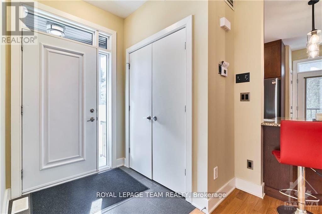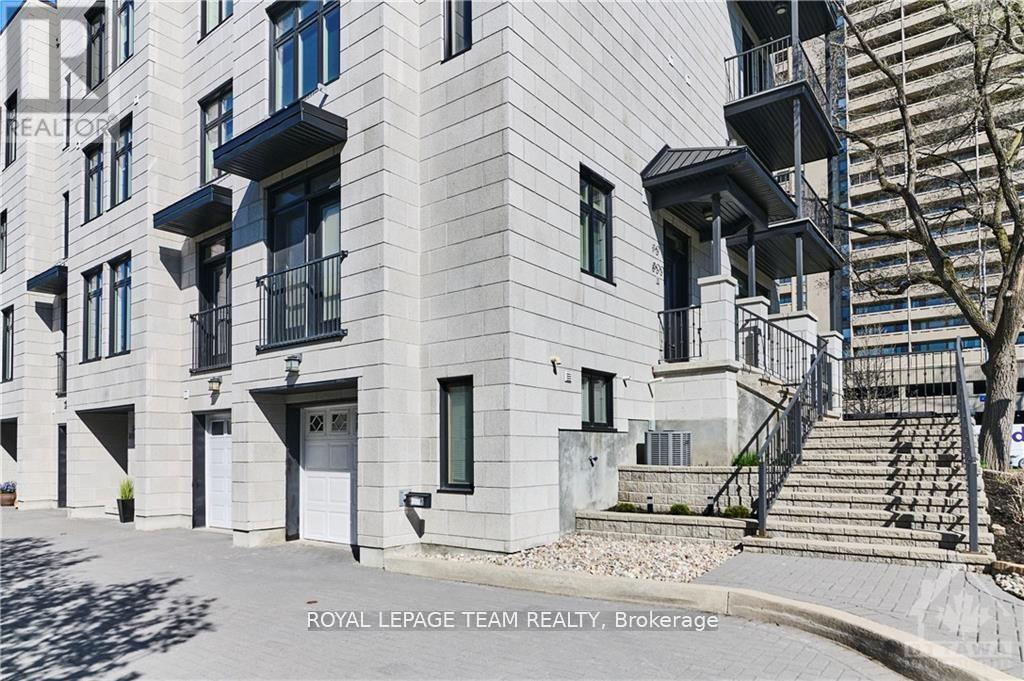 A striking, ultra-modern end-unit in one of Ottawa's most convenient and sought-after neighbourhoods. Defined by its unique architecture and clean contemporary design, this home stands apart with a look and feel that is rarely found. The interior offers a bright, functional layout with hardwood flooring throughout and large windows that fill the home with natural light on every level. The kitchen features granite countertops, generous workspace, and an easy flow into the main living areas, ideal for both daily living and entertaining. Custom window coverings are already installed, adding a finished and cohesive feel. An in-home elevator provides exceptional convenience and long-term accessibility across all levels. The second floor is thoughtfully laid out for family or guests, with a full laundry area placed exactly where it is most useful. The primary suite is well designed with a walk-in closet and a 5-piece ensuite featuring a double vanity, soaker tub, and walk-in shower.On the top level, the rooftop terrace is a standout feature. Exceptionally large and private, it offers impressive views of the city along with a gas BBQ hookup, creating a true outdoor extension of the living space. The lower level includes inside access to the garage along with a bright office space that works well for working from home. Additional features include a heated driveway and low-maintenance living. Association fees cover lawn, garden, and snow management, making for truly simplified ownership. Few row units combine this level of design, function, and location. (id:58075)