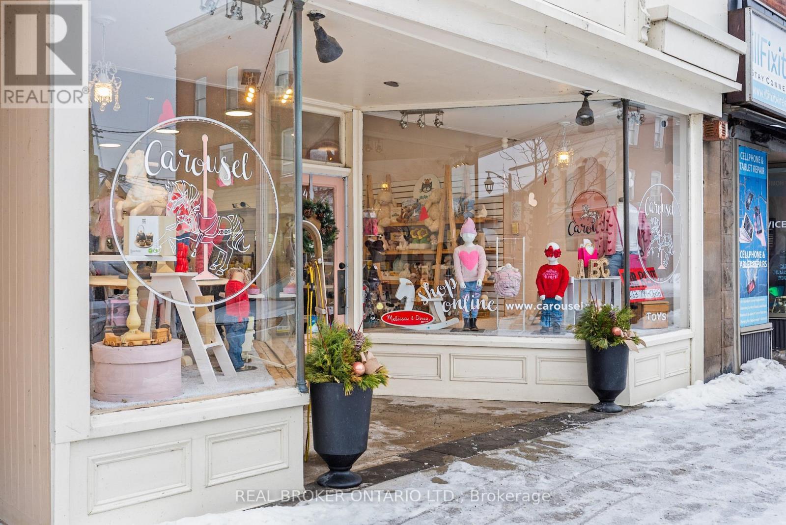 Welcome to 149 Bridge Street! This turn key, fully renovated upscale retail space is located in the heart of Carleton Place's historic shopping district. This gorgeous main floor retail space is generously sized and features large bay windows and a glass door that allow for abundant natural light. The restored interior is sure to impress customers. Surrounded by several popular restaurants and other boutique shops, this commercial space is strategically positioned to benefit from strong foot traffic. Just a short walk to the new bridge and the Mississippi River, the area offers undeniable small town charm and is occasionally selected as a filming location for Hallmark movies. The property offers approximately 1,637 square feet of retail space, an additional 565 square feet of rear warehouse and storage space, two rear parking spaces for staff, and ample free street parking for customers. Carleton Place is consistently one of Canada's fastest growing communities, making this an excellent opportunity for small businesses to thrive. (id:58075)