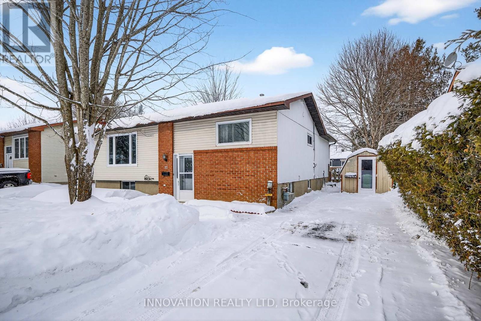 - Brick, Vinyl siding