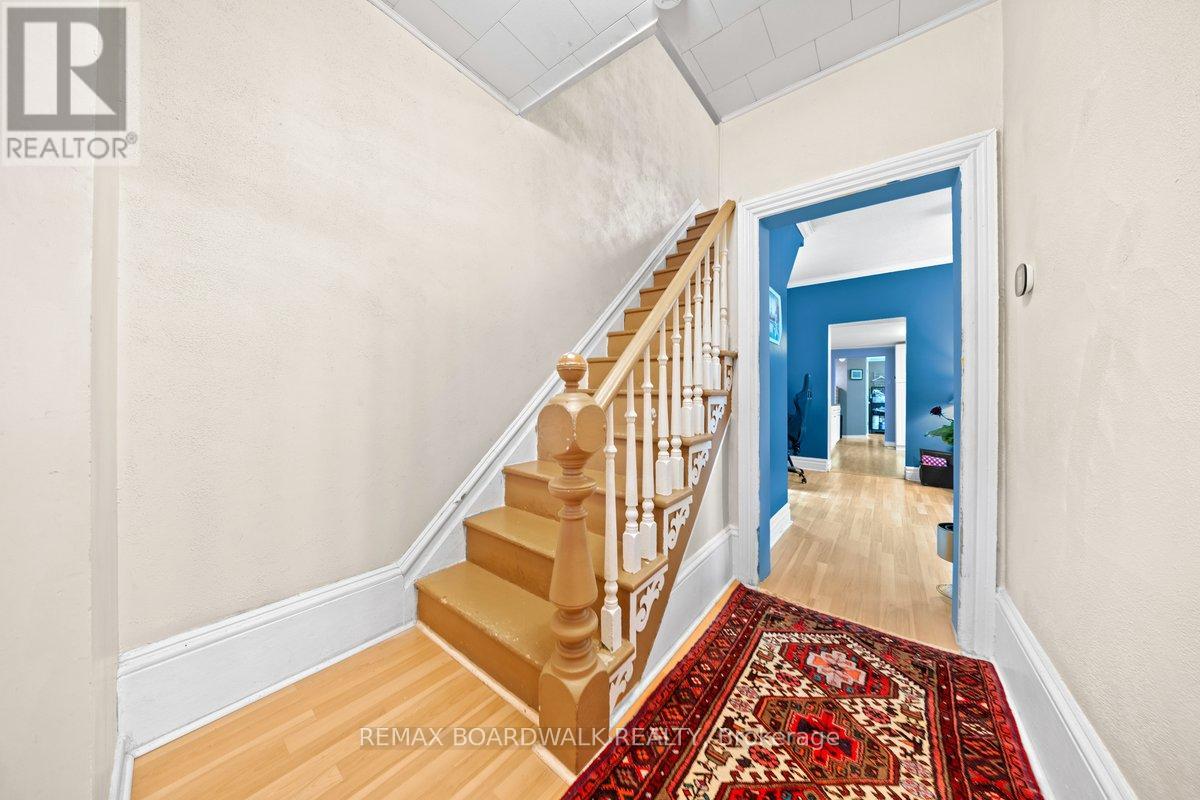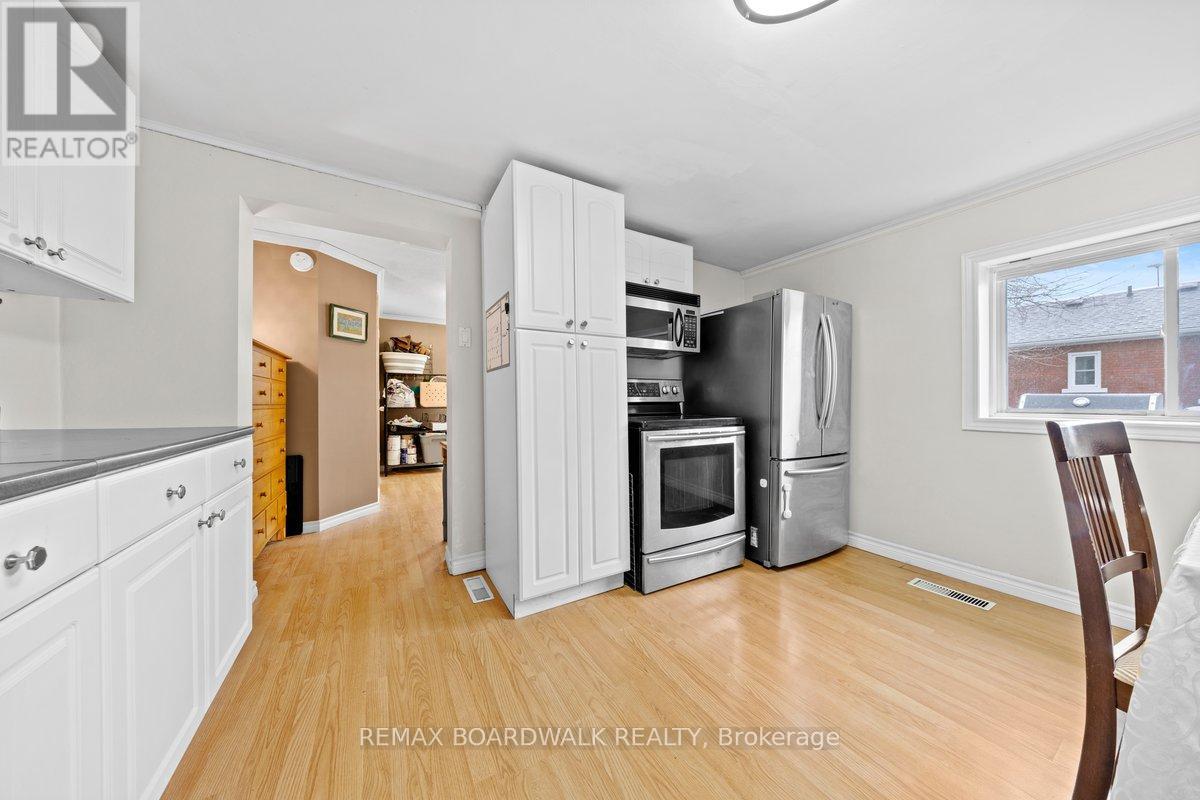Exceptional value meets future potential in this classic red-brick two-storey. Offering 2+1 bedrooms on a generous L-shaped lot with frontage on both Townline and Ramsay Street, this property delivers rare dual access-including a quieter side street entry-and flexibility that's hard to find in town. Inside, the home blends character with everyday functionality. The bright eat-in kitchen features newer stainless steel appliances and flows seamlessly into a rear mudroom with laundry, storage, and access to the side deck-designed for real life. The living room showcases charming crown mouldings, while the versatile front den is ideal for a home office, studio, or small business setup. An enclosed front porch adds welcoming, usable space year-round. Upstairs, you'll find two comfortable bedrooms and a beautifully updated full bathroom. The basement offers excellent storage, with additional potential to add a second bathroom on the main level near the laundry area-further enhancing long-term value. Significant updates have already been completed, including furnace (2016), central air (2012), hot water tank (2022), roof, fencing, appliances, updated wiring, new ductwork to the upper level, and fresh paint-providing peace of mind and reducing future capital costs. Outside, the fully fenced backyard includes a garage/storage building with access from Ramsay Street-ready to be reimagined as a workshop, studio, or additional storage. A smart move for buyers looking to get into the market without compromise-or investors seeking a property with flexibility, updates, and upside in a convenient in-town location close to everything. (id:58075)