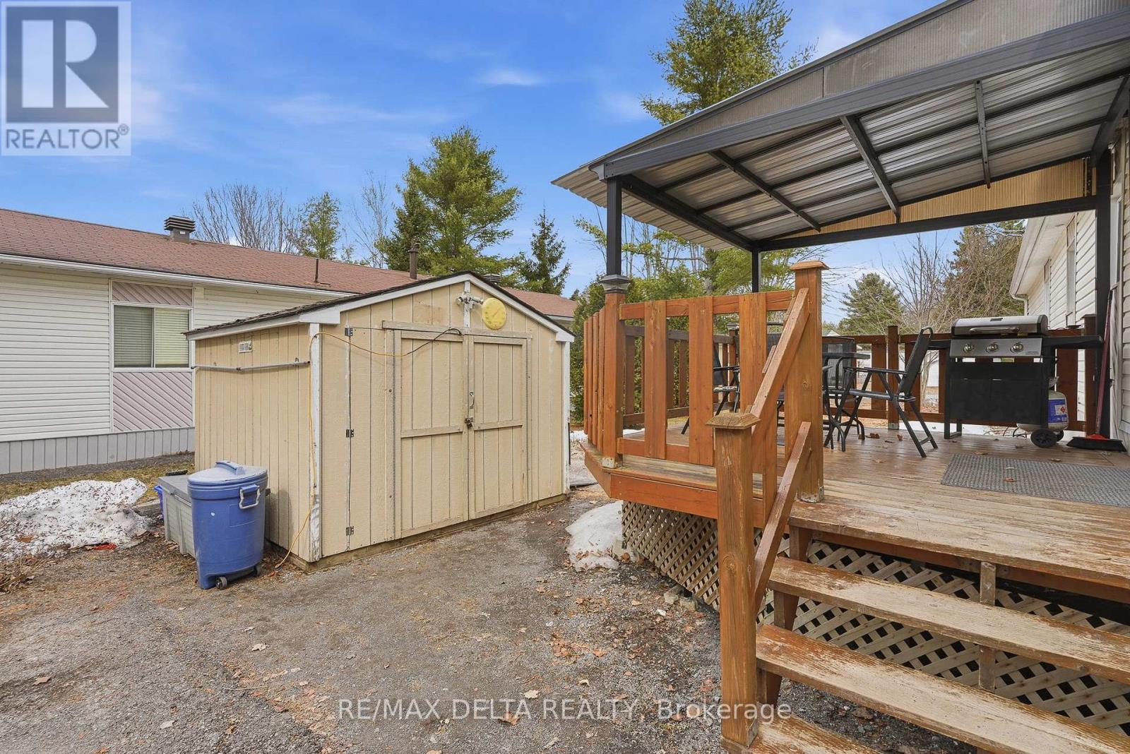 Well-maintained mobile home nestled in a quiet, established land lease community in Clarence-Rockland. Offering a functional and comfortable layout with 2 bedrooms and 1 full bathroom. The bright open-concept living and dining area features laminate flooring and a stylish accent wall, creating a warm and inviting space. The kitchen is well-appointed with white cabinetry, tile backsplash, dark countertops, and stainless steel appliances. All appliances are included: stove, fridge, microwave, washer and dryer, making this a truly move-in ready opportunity. Step outside to enjoy the deck perfect for relaxing, a gazebo for outdoor entertaining, and a garden shed offering ample storage. Gravel driveway with convenient parking. An excellent opportunity for anyone seeking affordable homeownership in a peaceful community setting. Land lease community; monthly fees apply: 718$/ month which includes taxes, water, sewer, road maintenance, snow plowing, property management, garbage. (id:58075)