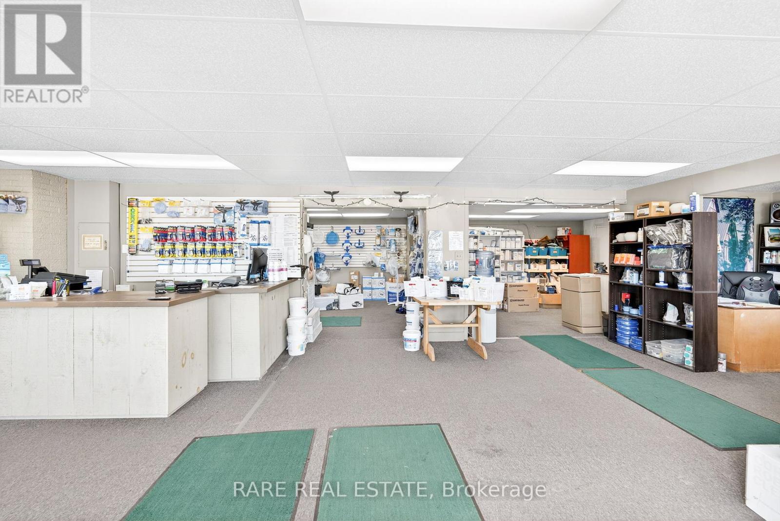An exceptional opportunity to acquire both a thriving, established swimming pool and hot tub business, in addition to prime real estate, all in one package. Located at the high-visibility corner of Hwy 2 & Trulls Rd, just 2 km from Hwy 418 and minutes to the 407, with a busy shopping plaza directly across the street. The property features a fully renovated 1,200 sq.ft. residence with 2 bedrooms upstairs plus a main floor exercise room (potential 3rd bedroom) with a newly landscaped backyard which backs onto a creek. It is Approx. 1,800 sq.ft. of commercial space which includes covered outdoor storage and a chlorine tank valued at approximately $10,000. Situated on a greenbelt, ensuring lasting natural surroundings. Operating for 35 years with minimal local competition, the business has a large and loyal client base, a strong team, and a proven track record. The retiring owner is willing to assist with the transition and personally introduce the buyer to existing clients. Vendor Take-Back mortgage available up to $500,000 for qualified buyers. This is a rare chance to secure a profitable operation and property in a prime location perfect for an owner-operator or investor. (id:58075)