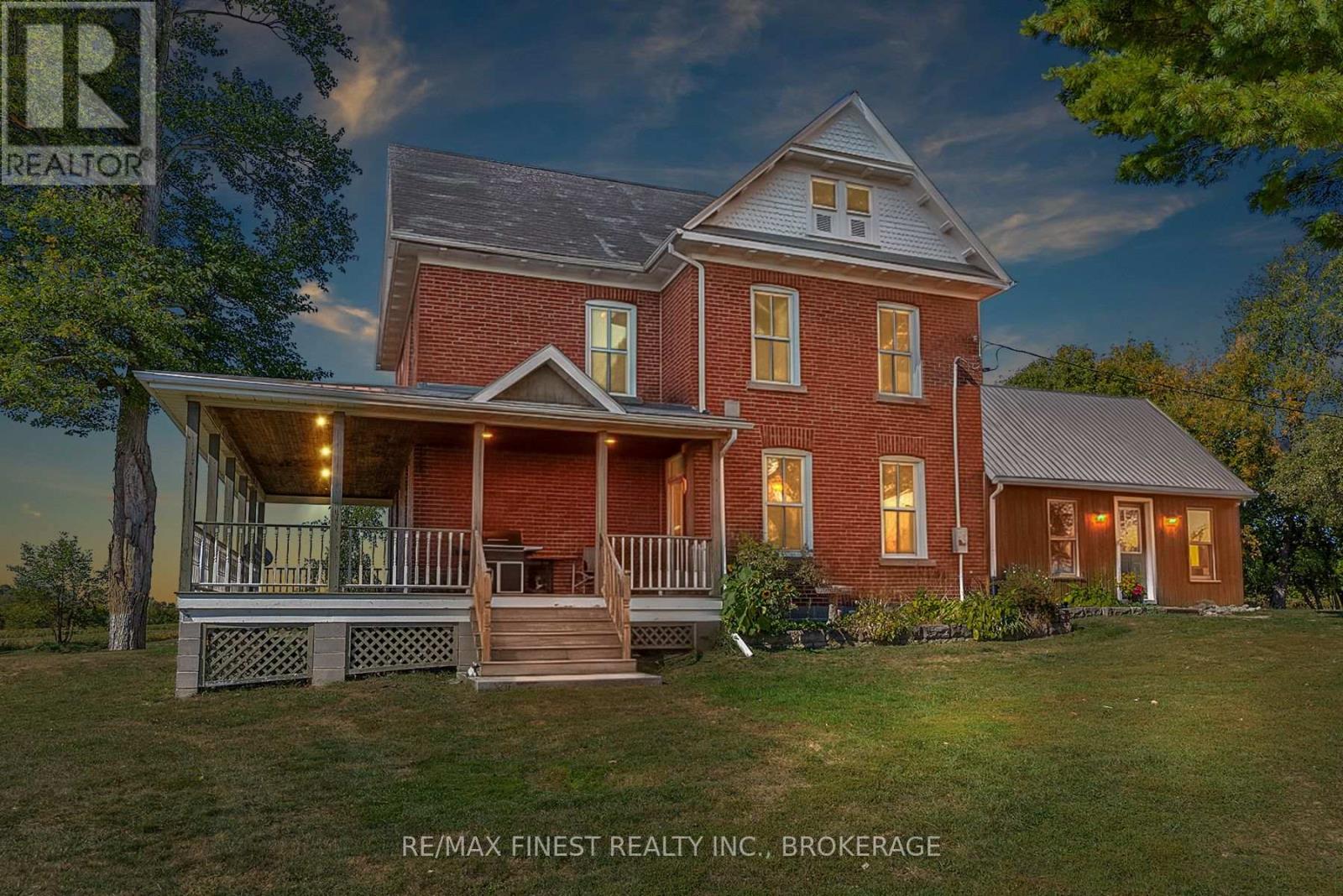 Picturesquely set on over 4 acres and only 15 minutes from Kingston, this timeless 2-storey brick home perfectly blends elegance with country charm. Step inside to find a true country kitchen, with abundant pantry space, modern appliances, and an Elmira cook stove, exuding functionality and inviting vibes. Warm hardwood floors flowing through much of the main level, featuring a spacious living room, a sunroom complete with vaulted ceilings, a convenient laundry room with storage, and a full 3-piece bath. Upstairs, hardwood continues into four cozy bedrooms and a 4-piece bath. A spacious attic provides endless potential whether you envision a studio, playroom, or home gym, your dream space awaits. The unfinished basement offers even more room for your future projects. Updates include extensive spray foam throughout the home. Outside, the wrap-around porch is the perfect spot for morning coffee, overlooking the sweeping green landscape. Outbuildings grace the property, ready for your personal touch to complete the country lifestyle. (id:58075)