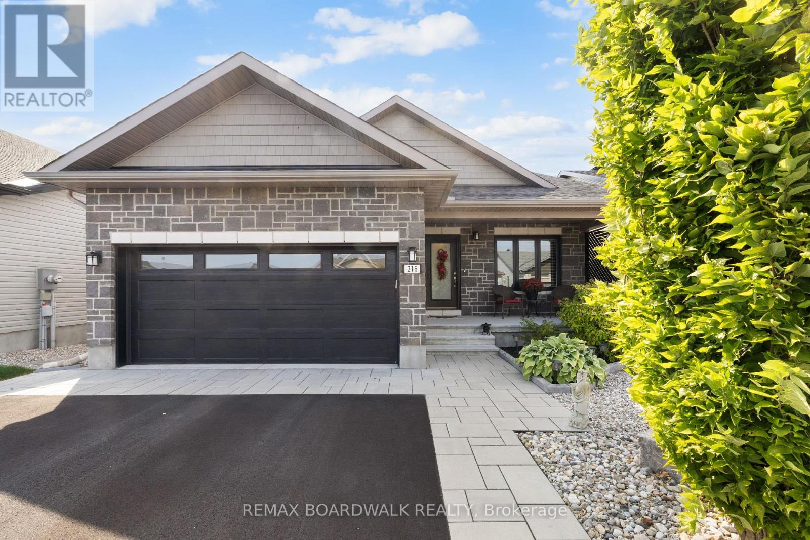 Beautiful bungalow located in Mill Run, one of Almonte's most sought-after communities, where pride of ownership is evident throughout. This thoughtfully designed 2+2 bedroom, 3 full bathroom home offers a bright, open-concept layout ideal for both everyday living and entertaining. Vaulted ceilings create an inviting sense of space in the main living area, complemented by rich hardwood floors and a cozy gas fireplace. The custom kitchen is truly the heart of the home, featuring ample cabinetry, stainless steel appliances, a large island with seating, and an impressive walk-in pantry. The primary suite has been redesigned to provide additional space and comfort, complete with a generous walk-in closet and a well-appointed 4-piece ensuite. A convenient main-level laundry room enhances the home's seamless flow. The finished lower level offers abundant additional living space, including a spacious recreation room with gas fireplace, a full bathroom, and two large bedrooms-perfect for guests, extended family, fitness room or a home office setup. This home also provides exceptional storage and peace of mind with a standby home generator. Step outside to enjoy a zero-maintenance yard and a professionally built shed, ideal for easy living. Situated in a prime location within walking distance to grocery stores, pharmacy, coffee shops and hardware store. Minutes to Almonte and its charming boutiques, cafés, and restaurants. This exceptional home blends comfort, convenience, and community, offering refined, low-maintenance living with vibrant small-town charm. (id:58075)
