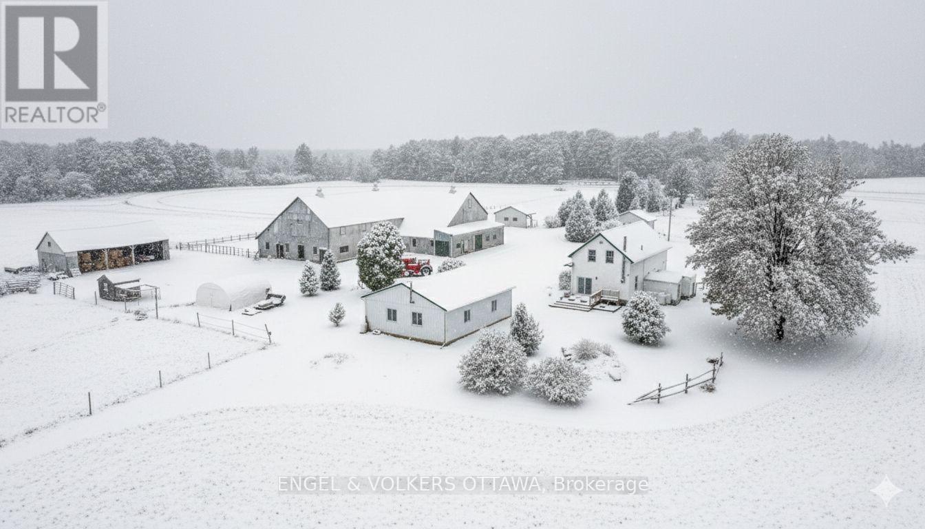 Discover the perfect blend of rustic charm and modern convenience with this 2-bedroom, 2-bath farmhouse set on 34+ acres. Currently generating over $8,000 in gross revenue each month with options for much more, this property offers both a warm family home and an outstanding agricultural opportunity. The open-concept layout features a cozy family room with a wood stove for chilly evenings, a bright dining room, and a stylish, well-equipped kitchen with brand-new appliances throughout. A dedicated home office provides a quiet, productive space in a serene rural setting.A true horse lovers dream, the property includes a 26-stall barn, tack room, and wash stall, along with multiple paddocks with electric fencing, a riding ring, and a -mile training track. Additional highlights include two decks with breathtaking views, a detached shop with lift for storage or projects, and acres of hay fields with room for cash crops, ensuring agricultural versatility and income potential. Conveniently located just 20 minutes from Rideau Carleton Raceway, this rare offering balances rural tranquility with easy access to city amenities. More than just a home, this is a lifestyle. New Heat pump installed November 2023. (id:58075)