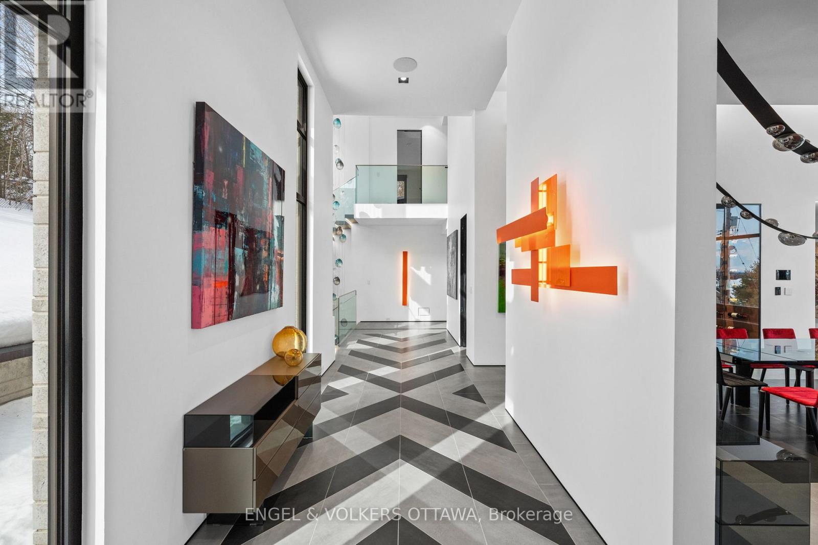 This extraordinary custom-built residence is a statement in modern design and uncompromising craftsmanship. Starting with its massive front door as you enter with a concrete and steel feature wall and open riser, floating stairs complimented by a 3-level custom built chandelier. A copper fireplace and wine cellar surround the dining room with custom artwork and light fixtures. At the heart of the home is a spectacular chef's kitchen designed for both everyday living and grand entertaining. Featuring premium appliances, custom cabinetry and exquisite stone surfaces. The space is complemented by a fully equipped, hidden pantry that allows preparation and hosting to remain seamless while maintaining the refined aesthetic of the main kitchen. The home offers generously proportioned bedrooms designed as private retreats, paired with beautifully appointed bathrooms showcasing high-end fixtures, custom vanities and spa-inspired finishes. The primary suite is particularly exceptional, featuring stunning views of the Gatineau hills, custom walk-in closet, built-in Miele coffee machine, humidor and a luxurious ensuite reminiscent of the world's finest hotels. An integrated elevator provides effortless access to every level of the home. Designed for both relaxation and entertainment, the lower level is a true lifestyle destination. Enjoy a private wellness experience with a dedicated sauna and professionally designed fitness room, along with a cinema-quality home theatre. For recreation and leisure, the home also features a state-of-the-art golf simulator and a covered exterior hot tub accessible by all bedrooms creating a private retreat to unwind while overlooking an enclosed sports court. Every detail of this exceptional residence reflects a commitment to modern sophistication, architectural beauty and the highest standard of luxury living. An extraordinary opportunity for those seeking a truly elevated lifestyle. (id:58075)