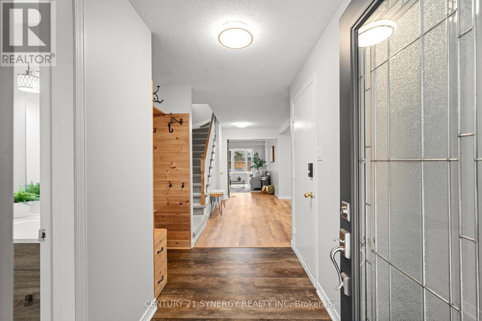 This bright and well-kept end-unit townhouse sits on a quiet cul-de-sac corner lot in Kanata, offering extra space, privacy, and a welcoming community feel. With three bedrooms, three bathrooms, a finished basement, and a tiny library, it's a great fit for families, professionals, or anyone looking for a move-in-ready home that blends comfort and practicality.The entryway makes a warm first impression with a custom-built wooden bench area and inside garage access. The main floor features a flowing layout that connects living and dining areas with ease. A cozy living room centers around a wood-burning fireplace, while a formal dining area and galley-style kitchen make entertaining simple. The kitchen includes stainless steel appliances, plenty of storage, and a convenient pass-through to the living room for an open, connected feel. Upstairs, three comfortable bedrooms offer flexibility for family life or guests. The primary suite features a private 2-piece ensuite that connects directly to a shared 4-piece bathroom-an ideal setup for convenience and function.The finished basement adds even more living space, perfect for a home office, rec room, or gym. Outside, enjoy a fully fenced, landscaped backyard built for relaxation, complete with a deck and hot tub. The corner lot allows for double gate access and adds extra privacy and outdoor space, all within a quiet, established neighbourhood close to parks, schools, and Kanata's many amenities. This home delivers warmth, space, and thoughtful details throughout. Ready for its next owner to move in and enjoy. (id:58075)
