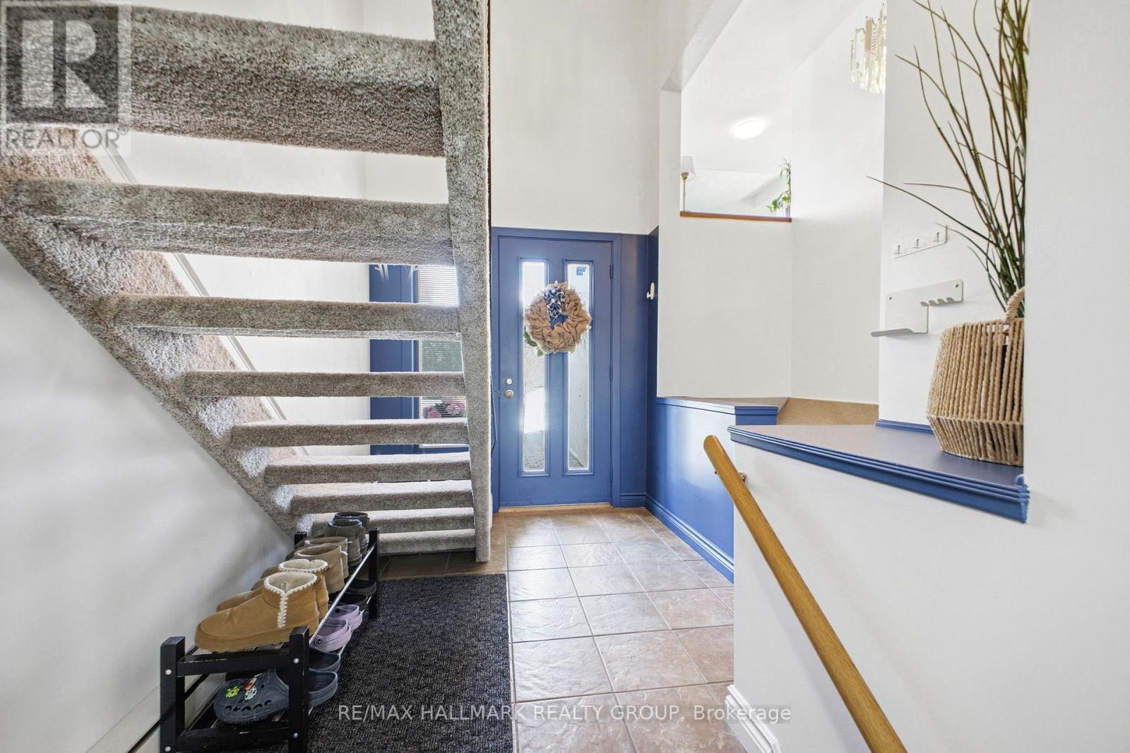 Tucked away in the sought-after Meadowlands community, this spacious 4-bedroom, 2-bath home sits on a private 71' x 102' lot and offers three levels of finished living space - ideal for families, in-laws, or multi-generational living. The main floor living, dining, and sun room offers soaring vaulted ceilings, hardwood floors, tons of natural light from the oversized south facing windows, and a gas fireplace anchoring the living room. The kitchen is designed for family life featuring ample cabinetry with matte hardware, speckled granite counters, premium heated tile floor and backsplash, plus updated appliances (2024/2025). Two sizeable main-level bedrooms share a bright, white 3-piece bath. Upstairs are two additional large bedrooms and a refreshed 4-piece bathroom. The fully finished lower level is freshly painted, has a 2nd gas fireplace, and offers a flexible space for recreation and games, entertainment and media, or home office. Outdoors, enjoy a huge fully fenced backyard with patio-perfect for summer BBQs. Recent updates include pot lighting and fresh paint (2026), kitchen appliances and back roof (2024/2025), and AC (2020). Excellent location close to parks, shopping, trails and Algonquin College. 24 hours irrevocable. (id:58075)