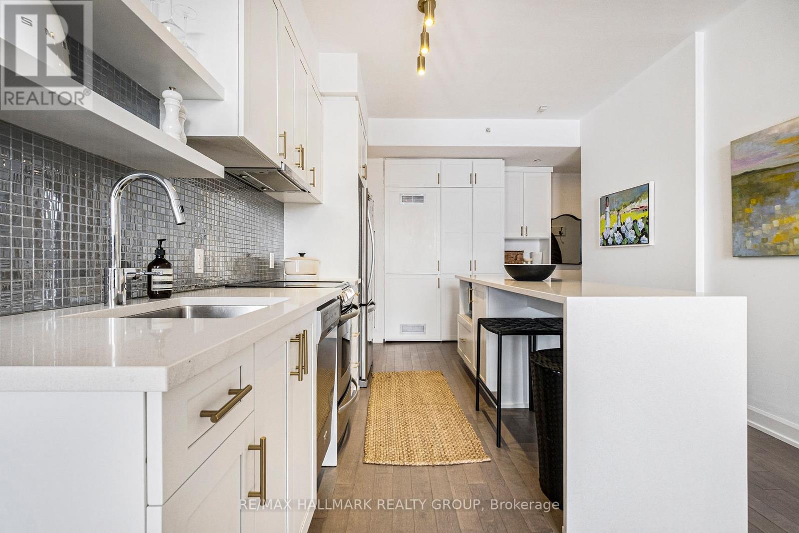 Nestled in the vibrant heart of Hintonburg, this stunning condominium is surrounded by the eclectic neighborhoods of Westboro, Little Italy, and Mechanicsville. Immerse yourself in the diverse culinary and shopping experiences these lively districts have to offer! This generously-sized 641 sq/ft unit features one bedroom, one bathroom, boasting boutique-style living with modern touches and a charming balcony. The contemporary kitchen has stainless steel appliances and quartz countertops, enhancing functionality and appeal. The open-concept layout creates an inviting space, perfect for entertaining and seamlessly accommodating your everyday lifestyle. Enjoy the convenience of HEATED UNDERGROUND PARKING and a storage locker. NOTABLY, THIS CONDO ALSO OFFERS ADDITIONAL CUSTOM BUILT-IN CABINETRY, providing added functionality with dedicated space for a TV, along with supplementary shelving and storage. Elevate your living experience in this stylish urban retreat. HEAT AND WATER INCLUDED! See it TODAY! (id:58075)