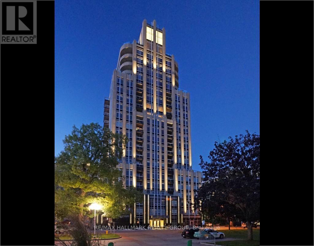 Peaceful 1 Bedroom/1 Bathroom + Den available immediately in the Merit, an elegant Art Deco inspired building new in 2014. This open concept North facing unit offers treetop views over the Heritage Building at City Hall and the hustle and bustle along Elgin Street is one block away. The flexible den space can be opened up to extend the main living space or closed to use as a private office and guest room. The well laid out and efficient kitchen offers great counter space, lots of storage, a double sink, and bar seating overlooking the living and dining area. This suite also features a balcony directly off the main living space, in-unit laundry, storage locker and one underground parking spot in the heated garage complete with an EV charger. Hardwood flooring throughout. Building amenities include a workout room, guest parking and a well appointed rooftop terrace with common BBQ's and a spectacular view across Ottawa. This A++ location is walkable to all downtown has to offer including Parliament Hill, Ottawa City Hall, the Supreme Court, and the NAC. There's also a great Farm Boy a few blocks away and countless cafes and restaurants along Elgin. This is a non-smoking building including private balconies and all common areas. Rent includes water, hot water tank. Hydro & internet not included. (id:58075)