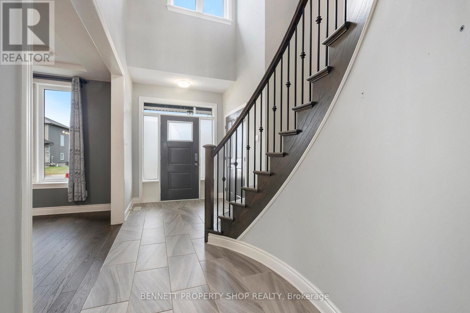 GROWING FAMILIES REJOICE! Discover unparalleled elegance and practicality in this 5-bedroom, 4-bathroom masterpiece by award-winning Talos Homes, spanning over 3,300 sq.ft. on a serene, family-friendly Richmond street. This executive residence blends design with functional sophistication, featuring rich hardwood floors, expansive windows, and a dramatic illuminated solid-wood winding staircase leading to an open-concept layout with a chef's kitchen boasting granite countertops, custom cabinetry, stainless steel appliances, a central island, and a walk-in butler's pantry, flowing into a sophisticated dining room and a cozy living area with a stone gas fireplace. The luxurious primary suite offers a walk-in closet and spa-like ensuite with dual vanities, a soaker tub, and glass shower, while a finished basement provides a 5th bedroom, full bath, and versatile family room. A heated, insulated triple-car garage with EV charging is perfect for enthusiasts, complemented by a fully fenced, irrigated backyard with an automatic sprinkler system with a covered porch and space for a future pool, all steps from parks, top schools with bus pickup, and amenities - 110 Talos Circle is a lifestyle of sophistication; book your private tour today! 4 bedrooms above grade and 1 below grade. Some photos are digitally enhanced. (id:58075)