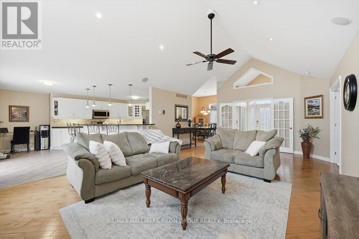 Set on a generous 0.53-acre lot in the heart of Cumberland, this custom bungalow offers a rare combination of privacy, space, & thoughtful design. Surrounded by mature trees & located on a peaceful street, this original-owner home features 3+1 bedrooms, 3 full bathrooms, & over 2,000 sqft above grade of finished living space, ideal for those seeking comfort with a touch of everyday luxury. The main level welcomes you with an open layout that is both inviting & practical. A bright foyer leads to a spacious living room where a cathedral ceiling & gas fireplace create a warm focal point for family time or relaxed evenings. Hardwood & tile flooring flow seamlessly throughout, while the dining room & well-appointed eat-in kitchen provide excellent space for hosting. Granite countertops, stainless steel appliances, radiant floor heated, & a handy breakfast bar make the kitchen as functional as it is stylish. The primary bedroom offers a restful retreat with a walk-in closet & spa-inspired, radiant floor heated, ensuite complete with soaker tub & walk-in shower. Two additional bedrooms & a full 5pc, radiant floor heated, bathroom complete the main level, offering comfort for family or guests. Downstairs, the fully finished basement expands your lifestyle possibilities: radiant heated floors, a 4th bedroom, a 3pc bath, & an oversized recreation area perfect for a games room, home office, workout space, or future multi-generational living. Storage is abundant, including a cold room for seasonal items or preserves. Step outside to a private outdoor environment designed for leisure. The backyard showcases a heated saltwater pool, stone patio, and lush landscaping framed by tall cedars - an ideal place to relax quietly or host memorable summer gatherings. With a double garage & quick access to Highway 174, Orleans amenities, & downtown Ottawa, this remarkable property delivers the convenience of city access with the tranquility of estate living. Some photos virtually staged. (id:58075)