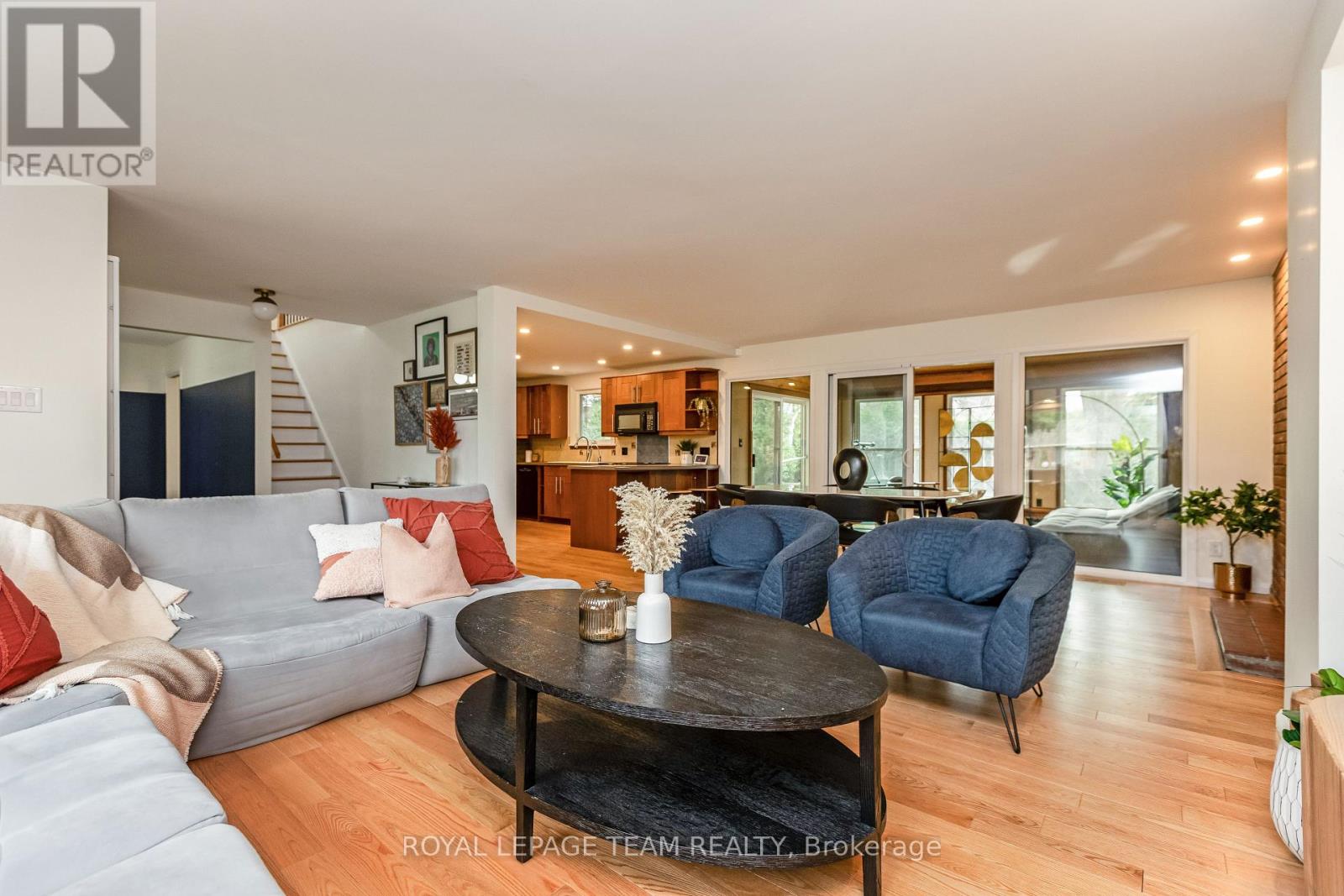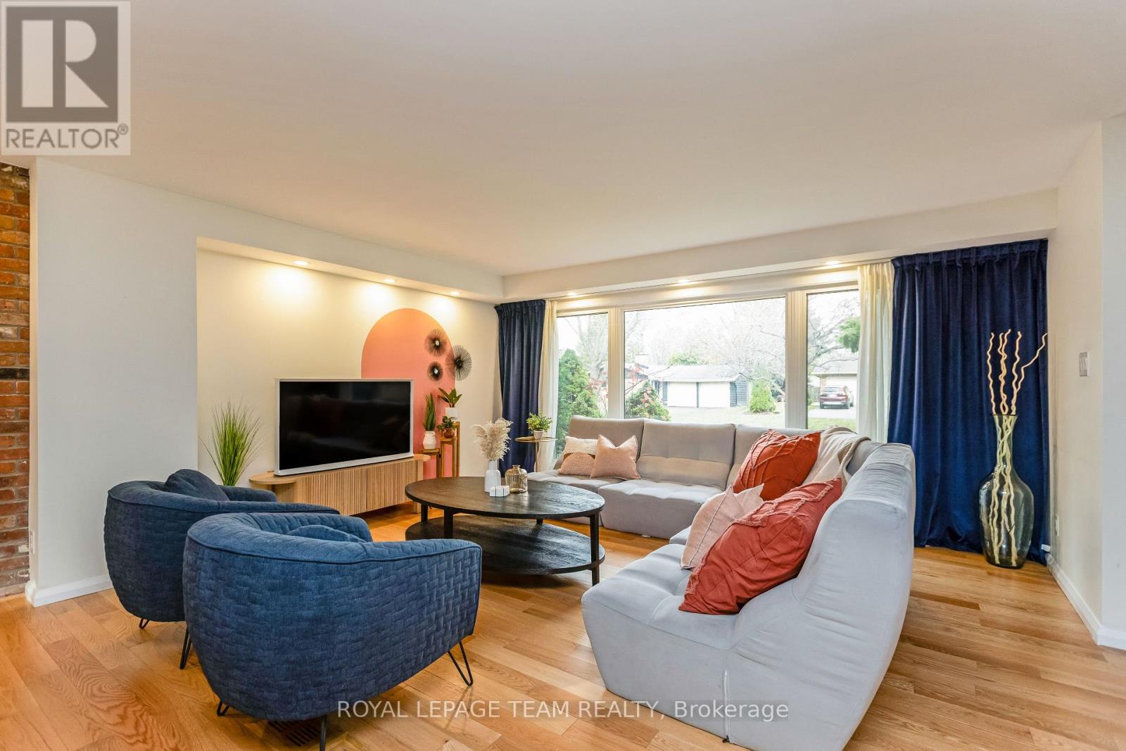 No rear neighbors! This striking mid-century modern 4-bed, 3-bath home sits on a quiet street in prestigious Beaverbrook, with an oversized lot that feels like your own private retreat. Extensively renovated throughout including flush beam installed creating open concept main floor living, it blends timeless design with contemporary updates. The open-concept main floor features clean lines, oversized windows, and a striking brick feature wall with a cozy wood-burning fireplace. A true highlight is the 4-season solarium with vaulted ceilings and skylights - perfect for soaking in views of the private backyard oasis year-round. A sunny flex room on the main level offers the ideal spot for a home office or dining room. Recent updates include the kitchen, three bathrooms, banister and iron railings, hardwood flooring, lighting, and wiring. Upstairs, the primary suite boasts a custom walk-through closet and sleek 3-pc ensuite. The finished basement extends the living space with a playroom and family room. Step outside to enjoy a spacious patio with pergola, hot tub, and mature landscaping - all with no rear neighbors. Close to parks, trails, and everyday amenities, this home offers the rare combination of privacy, style, and convenience. An iconically Canadian gem in the heart of Beaverbrook! (id:58075)