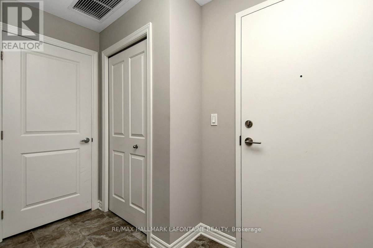 Welcome to Petrie's Landing! This spacious and thoughtfully designed 2-bedroom condo combines modern comfort with a fantastic location. Enjoy effortless access to transportation and the beautiful Ottawa River trails just steps from your door.The bright, open-concept living and dining area features engineered hardwood flooring, California shutters, and sliding doors that lead to your private terrace - perfect for morning coffee or evening relaxation. The kitchen boasts granite countertops, a breakfast bar, stainless steel appliances, and a stylish backsplash.The generous primary bedroom includes a luxurious ensuite with a soaker tub, separate shower, granite counters, and ceramic tile flooring. A second full bathroom with matching finishes conveniently connects to the in-unit laundry room.Nestled on the quiet side of the building, this condo is surrounded by greenery and even has a small park right out front. A wonderful blend of nature, style, and convenience come see it for yourself! (id:58075)