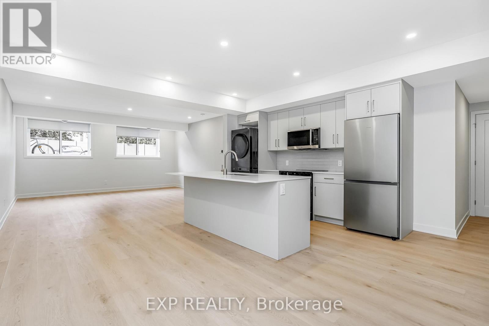 Welcome to 1267 Summerville - a brand-new, contemporary building nestled in one of Ottawa's most convenient and rapidly developing communities. Surrounded by parks, local amenities, and offering quick access to public transit and major routes, this location provides the perfect blend of urban accessibility and neighbourhood charm.This 2-bedroom, 1-bath unit redefines lower-level living with large windows that fill the space with natural light, creating an open and inviting atmosphere. The modern, open-concept layout features premium finishes, hardwood flooring throughout, and a sleek kitchen complete with stainless steel appliances, contemporary cabinetry, and ample counter space - ideal for cooking and entertaining. Both bedrooms are spacious and bright, complemented by a stylish full bathroom with modern finishes. With over 1,000 sq. ft. of living space, residents will appreciate the in-unit laundry, thoughtful craftsmanship, and attention to detail throughout. Parking available for an additional charge. 1267 Summerville offers the best of modern living - stylish, functional, and perfectly located. (id:58075)