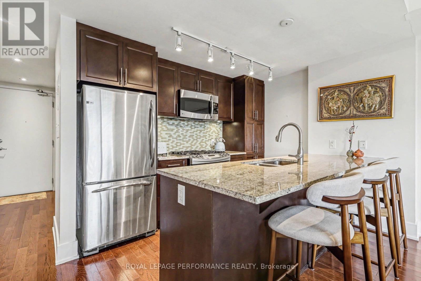 Welcome to Unit 405 at 131 Holland Avenue - a modern 1- bedroom condo in the heart of Ottawa West and Tunney's Pasture - one of Ottawa's most vibrant and sought-after neighbourhoods. This bright, open-concept condo features beautiful hardwood and tile flooring throughout, creating a stylish and low-maintenance living space. The contemporary open concept kitchen with breakfast bar is equipped with stainless steel appliances, including a gas stove, perfect for everyday cooking and entertaining. Unwind in the spacious 4-piece bathroom featuring a separate soaker tub for added comfort. The unit also offers the convenience of in-suite laundry and a private balcony accessible from the living room - an ideal spot to enjoy your morning coffee or evening relaxation. The large primary bedroom includes a generous walk-in closet with frosted sliding doors and a built-in closet organizer, providing excellent storage while maintaining a sleek aesthetic. Residents enjoy access to a variety of building amenities including a fitness centre, party room, and a rooftop terrace with beautiful city views. The unit also includes underground parking and a dedicated storage locker. Located in a highly walkable neighbourhood known for its bike lanes and lively streets, you are just steps from local cafés, restaurants, boutiques, the Civic Hospital, LRT transit, and Tunney's Pasture. An ideal home for those seeking a convenient and active urban lifestyle in one of Ottawa's most dynamic communities. Minimum 12 month lease. No pets and no smoking please. Application, credit check, proof of employment required with offer to lease. Tenant pays hydro and gas. Available April 15 or May 1st 2026. (id:58075)