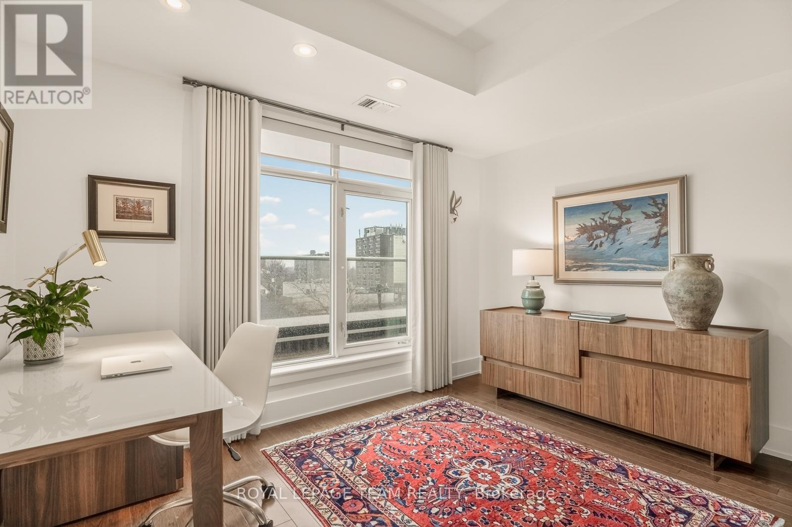 Open House Saturday April 18th 2-4pm. Clean lines, natural light, and 9-ft ceilings define this beautifully updated corner residence in the heart of Wellington Village - reflecting the elevated, livable and modern design Domicile is known for. This 2-bedroom, 2-bath condo features an open-concept layout with hardwood flooring throughout, anchored by a custom quartz and black walnut kitchen island, high-end appliances, and tailored millwork. The living and dining areas flow seamlessly, framed by full-height windows that flood the space with light and create a strong indoor-outdoor connection. Step onto the rare 700 sq. ft. South-West facing terrace, complete with pergola, gas line, and lighting - an ideal extension of the living space. Wonderul for vegetable, herb or floral gardening. Both bathrooms have been thoughtfully renovated with heated floors, quartz finishes, and spa-like details. Custom California Closets enhance both bedrooms. Set in a LEED-certified, smoke-free building with fitness centre, lounge, rooftop terrace, guest suite and visitor parking. Steps to Parkdale Market, local cafés, transit, and river pathways. An impeccably presented, move-in ready home. One oversized parking spot and adjacent private locker included. A must see in Wellington Village! (id:58075)