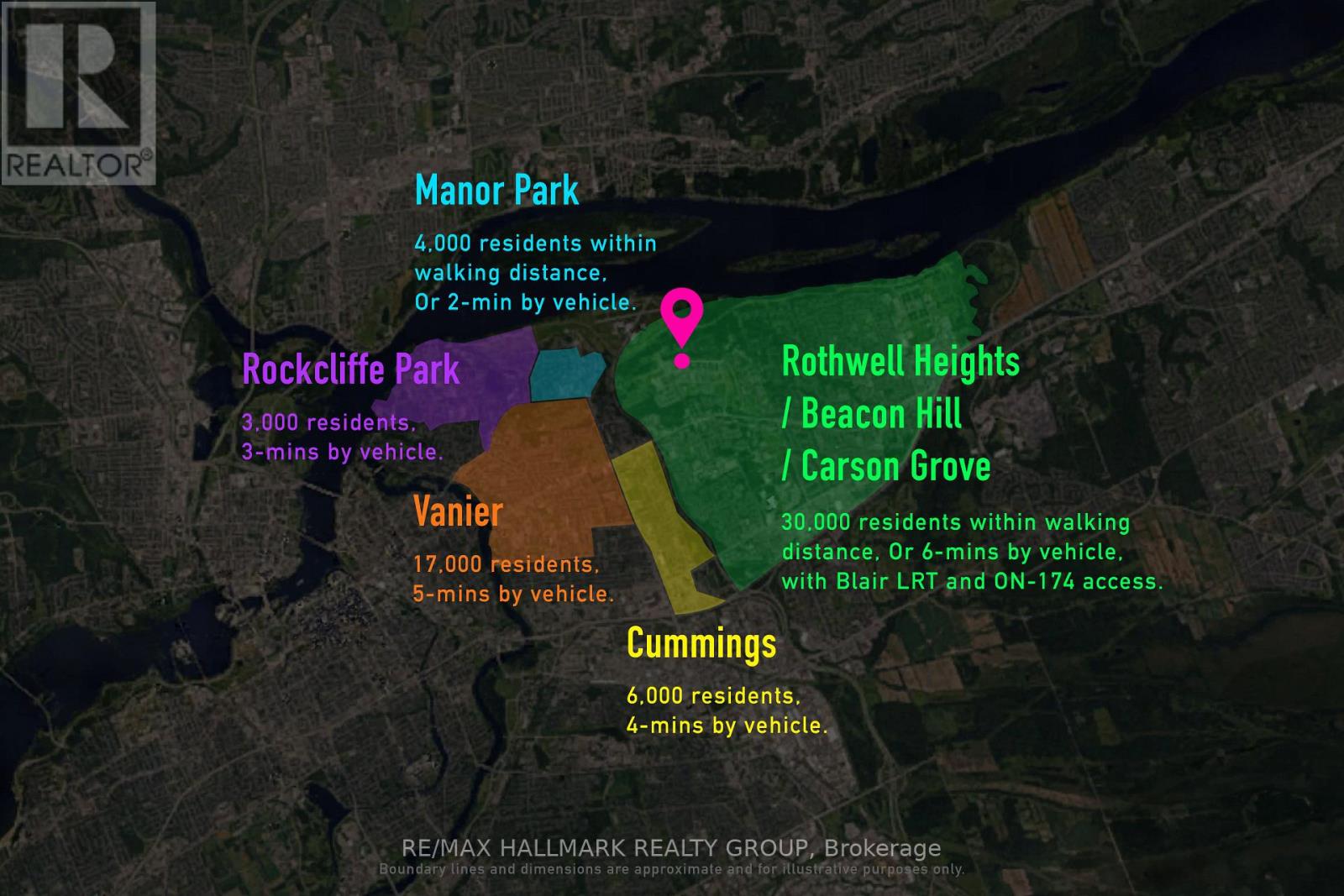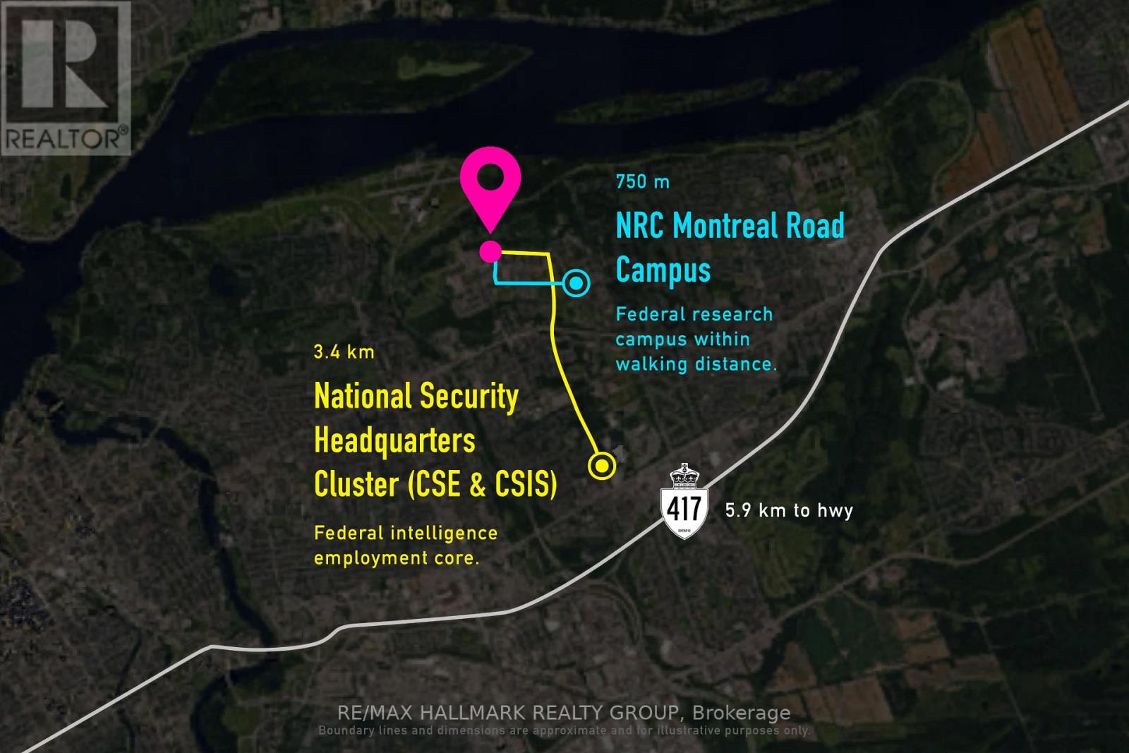 - Cross Streets: From Trans-Canada Hwy/ON-417 take exit 115 head North. Turn right onto Ogilvie Rd. Turn left onto Aviation Pkwy N. Turn right onto Montral Rd/Ottawa 34. Continue on Codd's Rd. Drive to Mikinak Rd. Property on right. ** Directions: Head southwest on Ottawa Regional Rd 174.. Take the Ch. Blair Rd exit. Turn right onto Blair Rd. Turn left onto Montréal Rd. Turn right onto Burma Rd./Wanaki Rd. Turn left onto Hemlock Rd. Turn left onto Bareille Snow St. Turn right.