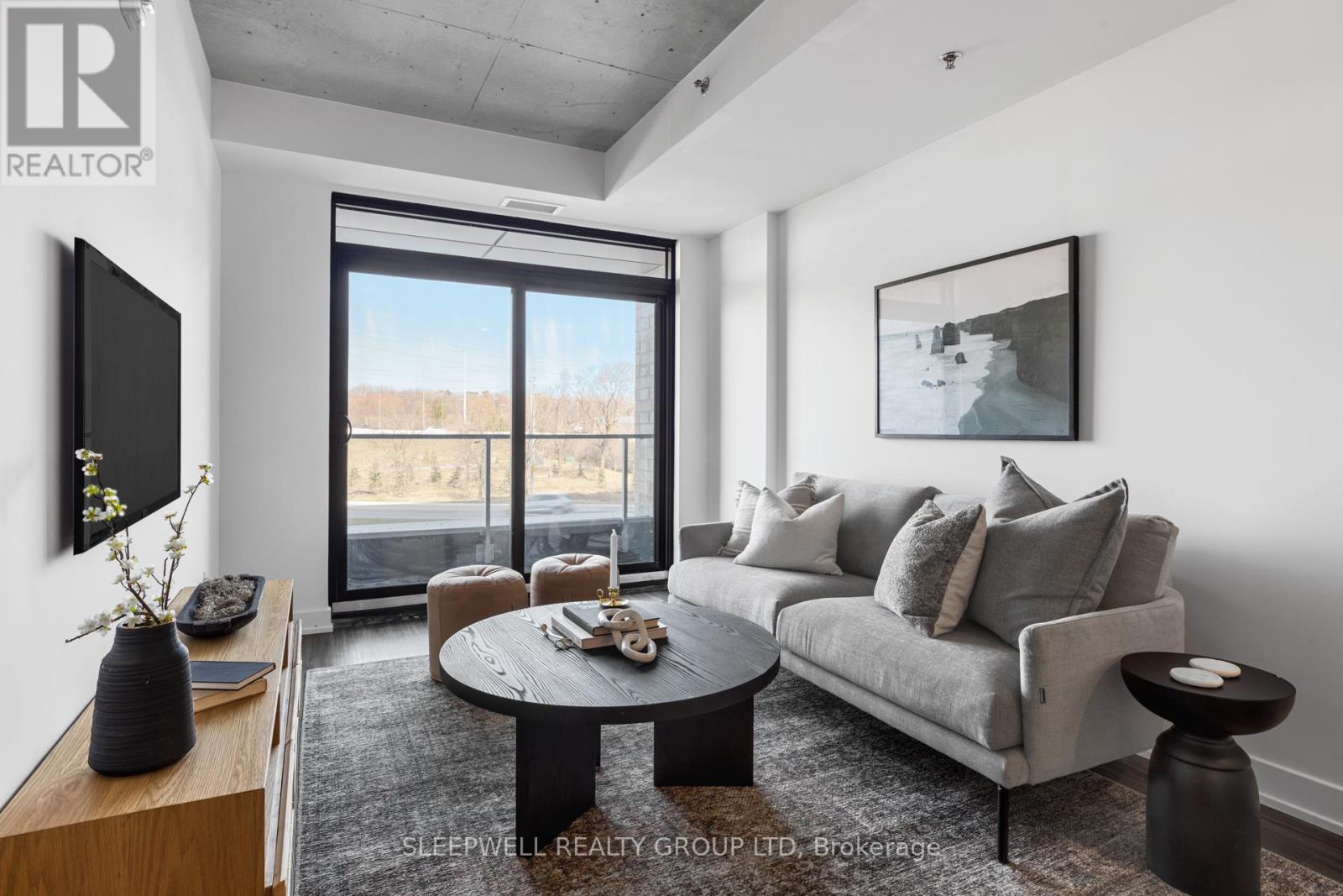 Welcome to The Talisman, the newest addition to this contemporary five-building community, offering modern urban living with premium finishes throughout. Available April 1st, this brand-new suite features an open-concept layout with large windows, sleek modern design, and ensuite laundry for added convenience. The kitchen is equipped with stainless steel appliances, including fridge, stove, dishwasher, and microwave, complemented by stylish finishes. Enjoy keyless entry and access to an on-site fitness centre. Heat and water are included; hydro is extra. Ideally located within walking distance to groceries, with public transit conveniently located directly in front of the building, making commuting effortless. A fantastic opportunity to live in one of the area's newest and most well-connected buildings. *Other floorplans available* *Picture of similar finishes, but different layout" (id:58075)