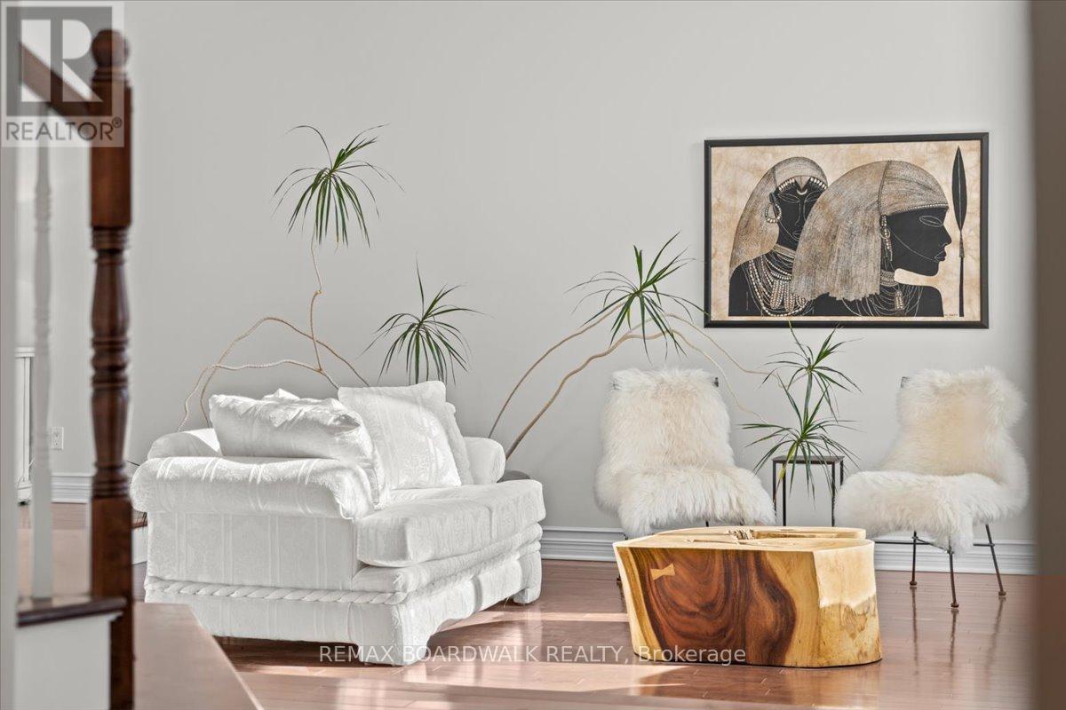 et on a quiet pie-shaped lot backing onto a mature ravine, this refined four-plus-one-bedroom residence offers a composed architectural presence defined by balanced rooflines, curved transom glazing, twin garage doors, & a timeless brick façade approached by an interlock walkway & covered entry. A modern front door framed by vertical transom glass introduces an interior shaped by proportion, light, & material continuity. Ceramic tiled foyer opens to a sculptural hardwood staircase rising through a dramatic two-storey volume. Formal living & dining spaces feature vaulted ceilings, wide plank hardwood flooring, expansive windows, & serene ravine views. Butler access leads to a centre island kitchen w/granite surfaces, marble backsplash, custom hood, built-in oven & microwave, induction cooktop, & deep pull-out pantry storage. Panoramic glazing defines the eating area, where twin garden doors extend living outdoors to an elevated entertainment deck surrounded by trees & privacy. Sunken family room w/marble framed wood burning fireplace anchors the main level, complemented by an open main floor den, powder room, & well designed laundry w/side entrance. Upstairs, the primary retreat features layered lighting, multiple windows, & a spa-inspired ensuite w/quartz dual vanities, a glass shower, & freestanding soaker tub oriented toward peaceful ravine views. Three additional bedrooms & a bright main bathroom complete the level. The lower level offers nine-foot ceilings, oversized windows, coffered detailing, a gas fireplace, an entertainment bar, a fifth bedroom, a bathroom, an exercise space, & generous storage. Mature trees frame the private rear setting, while inside access to the double garage completes a residence where architecture, comfort, and nature exist in quiet harmony. 24 Hour irrevocable on all offers. (id:58075)