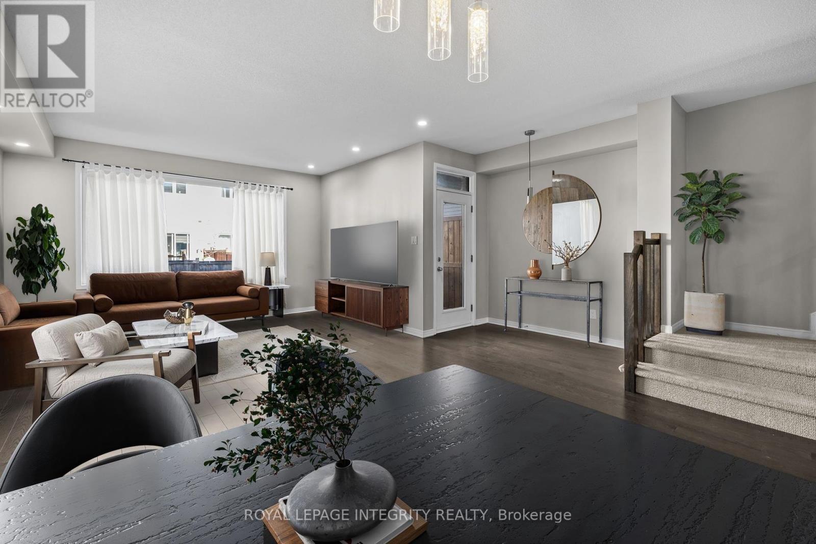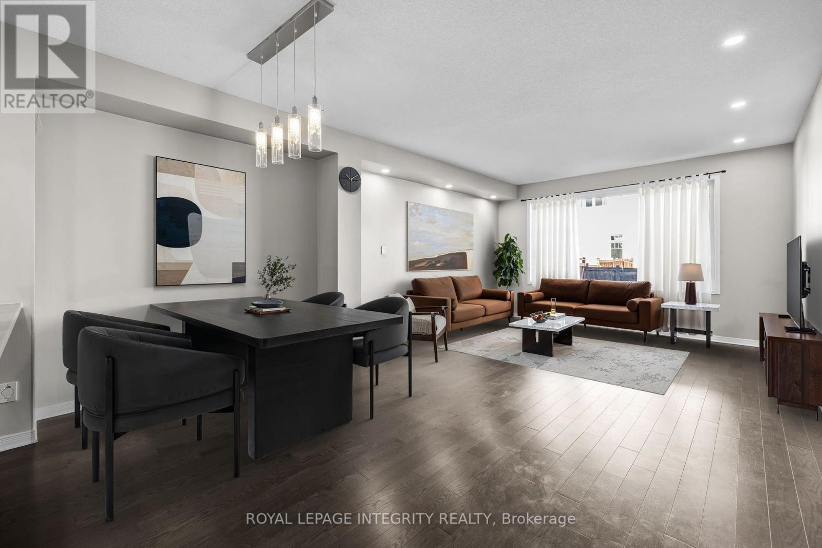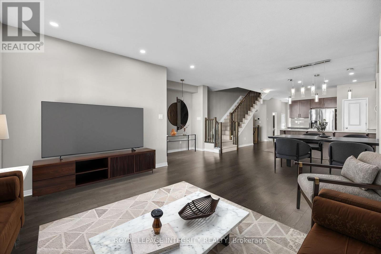 Welcome to 14 Hackney Private nestled in the heart of Stittsville, this spacious 3 bed + den, 3.5-bath townhome spans approximately 2,230sqft + 378sqft fully finished basement in a sought-after private enclave. The open concept main floor features beautiful hardwood floors, 9 ceilings, stainless steel appliances, a walk-in pantry, and a chic backsplash. Upstairs, unwind in the large den next to the generous master suite with walk-in closet, double-vanity ensuite, soaker tub, and glass shower. Two additional bedrooms and a main bath. The fully finished basement includes a fourth bathroom ideal for guests, home office, or extra living space. Located next to parks, trails, schools and essential amenities, this location offers it all! Don't miss the chance to make this your next home! (id:58075)