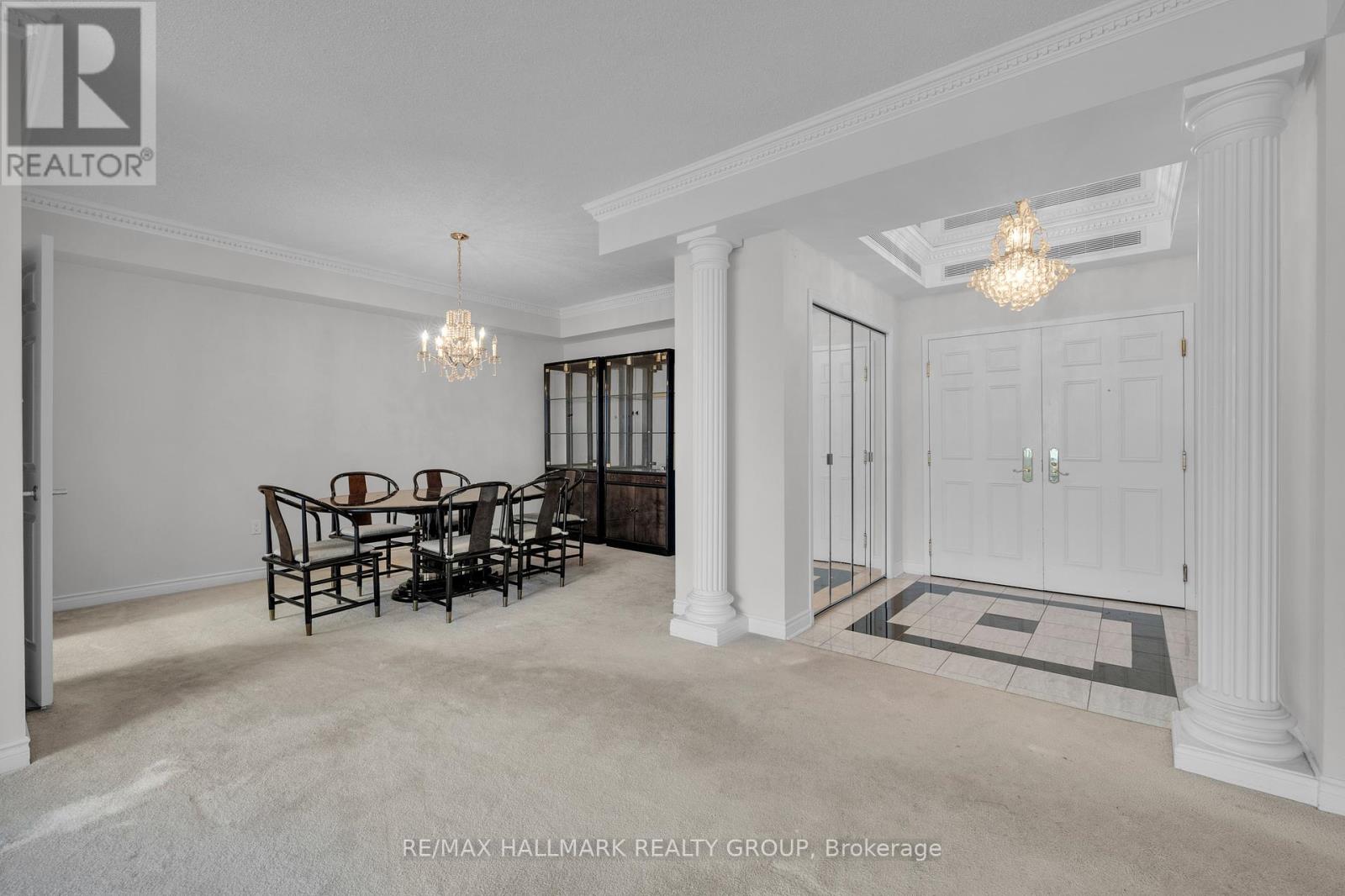 Welcome to 2204-1480 Riverside. A marble and mirrored entrance welcomes you into this elegant 22nd-floor residence at The Classics at Riviera, Ottawas most prestigious gated community. Spanning 1,520 sq. ft., the thoughtful layout places both bedrooms along one side of the condo for added privacy. The primary retreat features double-sided closets leading to a marble-clad ensuite accented in gold, while the spacious secondary bedroom is served by a second full bath. The dining room opens directly to the kitchen, creating a natural flow for entertaining, while the living room extends seamlessly into the sunroom. A bright breakfast nook connects back to the kitchen, making for a well-balanced, functional layout. With east-facing exposure, these spaces are filled with natural light and capture sweeping city views and stunning sunrises. Life at The Riviera is truly resort-style. Residents enjoy multiple gyms and fitness areas, tennis and pickleball courts, racquetball and squash courts, indoor and outdoor pools, and landscaped walking paths. Within the tower itself, exclusive amenities include a sauna, steam room, and both indoor and outdoor hot tubs not shared with the other two towers. Concierge service and 24/7 gated security provide peace of mind, with Hurdman LRT, Trainyards shopping, and downtown just minutes away. (id:58075)