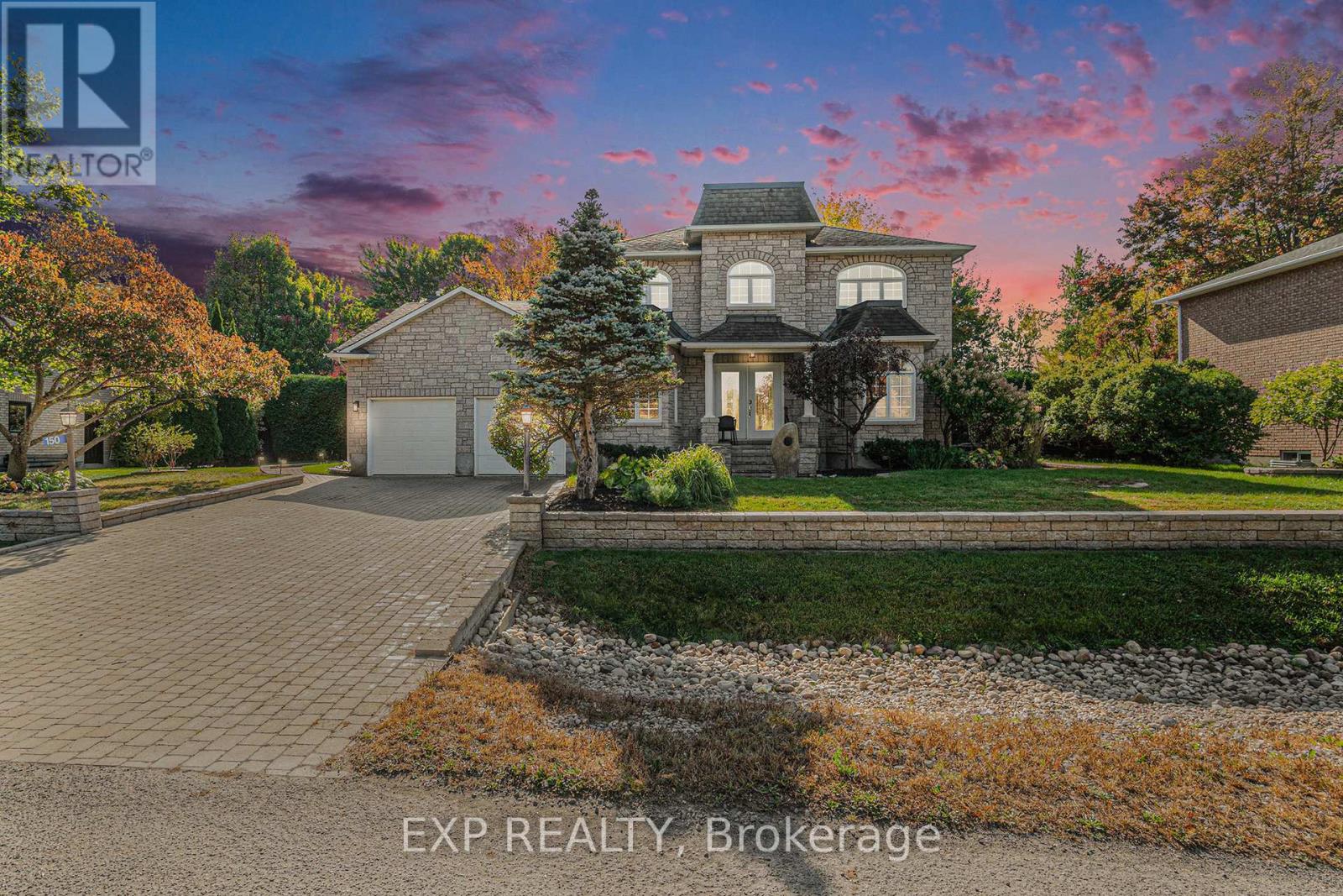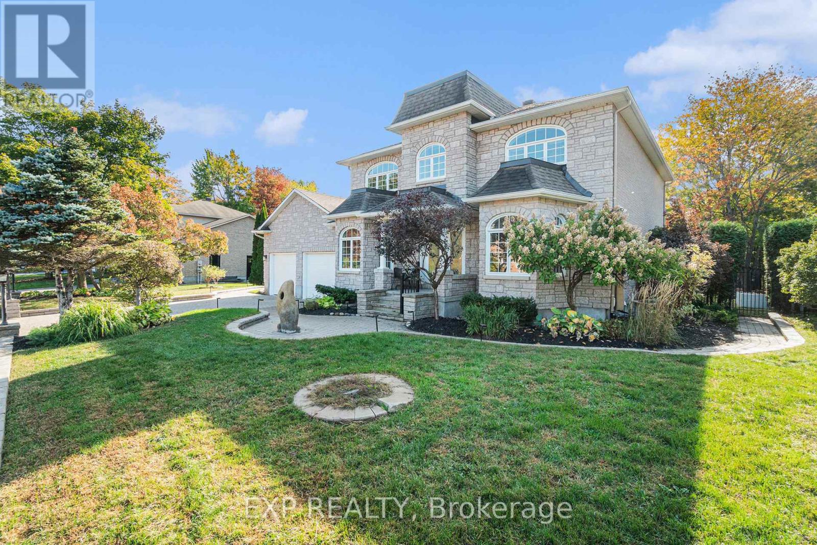 YOUR CASTLE AWAITS! Welcome to 150 Topaze Avenue in Navan, a magnificent 5-bedroom home (4+1) situated on a serene 93' by 150' lot backing onto greenspace and only minutes from shopping, schools, parks and Orleans. Extensive landscaping greets you from the driveway to the sides of the home and into the fully fenced backyard where you will find a 28' by 16' heated inground pool and hot tub, fully serviced gazebo and sheds, perennial gardens, mature trees, night lighting, rounded deck and plenty of extra space for the Family. Expansive main floor boasts a separate foyer, dramatic center staircase, crown moulding throughout, an OFFICE/DEN with pot lights, large living room and dining room (both with coffered ceilings and pot lights), HUGE eat-in kitchen with newly painted cabinets, pot lights, granite counters, center island, stainless appliances and access to the deck, a powder room and a STUNNING 4-season sunroom with vaulted ceiling, 3 skylights, a cozy gas fireplace and wall to wall patio doors overlooking the pool and gardens. Upper level has hardwood and crown moulding throughout, 4 good sized bedrooms including a primary with a walk-in-closet and spa-like ensuite with soaker tub and separate shower. Fully finished lower level is perfect for entertaining with a Family room, wet bar with seating for four, the 5th bedroom with walk-in-closet, a separate room with cedar closet (playroom or gym?), 3-piece bathroom with oversized shower, laundry room and plenty of storage. This home shines from top to bottom and is truly unique with its balance between architecture and nature! Upgrades over the last few years include furnace, air conditioner, tankless hot water, patio doors, some windows, kitchen painting, landscaping, inground sprinkler system and more. 48 hours irrevocable on all offers as per Form 244. SEE PROPERTY WEBSITE FOR MORE DETAILS AND SUMMER PHOTOS. (id:58075)