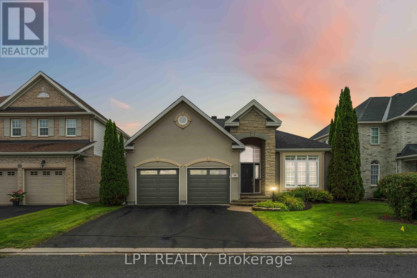 Welcome to 156 Riverstone Drive, an elegant bungalow set on one of Stonebridges most coveted golf course lots. Overlooking both the 14th and 16th holes, and with a serene pond just steps from your backyard, this home offers a lifestyle defined by peace, sophistication, and natural beauty. Inside, soaring vaulted ceilings and expansive windows flood the home with sunlight, creating a sense of space and warmth. The main level features 3 bedrooms and 2 full baths, while the finished lower level offers a versatile retreat with an additional bedroom and full bathroom perfect for guests or extended family. Recent upgrades ensure peace of mind and modern comfort, including a newer roof, furnace, and AC (2023), as well as new garage doors, deck, railing, insulation, and power blinds (2022). The refreshed kitchen with repainted cupboards, striking new chandeliers, and updated appliances (fridge, stove, washer, and dryer) bring a fresh touch of luxury to everyday living. Step outside and you'll discover the true magic of this property. Imagine sipping your morning coffee or evening glass of wine on your private deck, as the breeze drifts across the fairway, the sun sparkles on the pond, and the natural landscape creates a peaceful retreat. Here, life slows down inviting you to embrace the finer things, surrounded by beauty inside and out. This is more than a home its a lifestyle in the heart of Stonebridge. (id:58075)