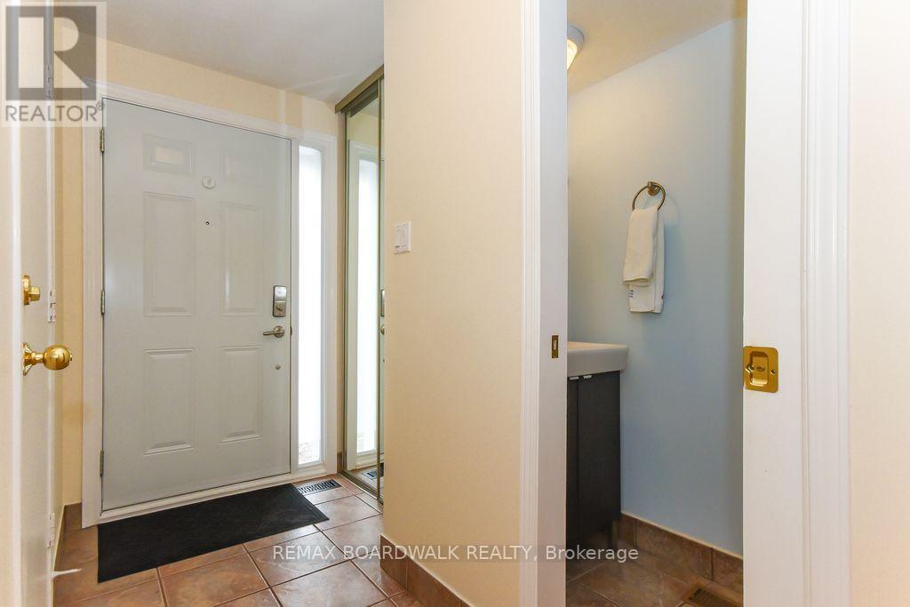 Location location! A walk to grocery shopping, bus service, library, restaurants, school, parks and much more. End unit with garage + 2 parking spaces at the door. Fenced back yard. Visitors parking. 5 appliances included. All rooms are generous in size. Wood burning fireplace. Beautiful 4 piece bathroom on the second level with soaking tub and separate shower. Lots of closet space. Finished rec room in lower level. Beautiful hardwood on main floor and stairs leading to second level. Laminate flooring on second level. As per form 244: 24 hours irrevocable on all submitted offers (no exceptions). Furnace and central air replaced in 2024. Please note that garage door is being replaced by Condo corporation this year. Main floor has just been professionally repainted in neutral tones. Just move into this beautiful place to call "home"! (id:58075)
