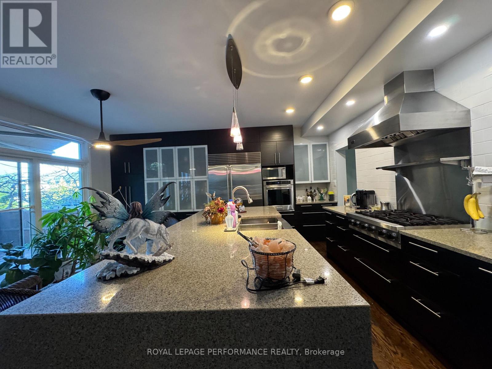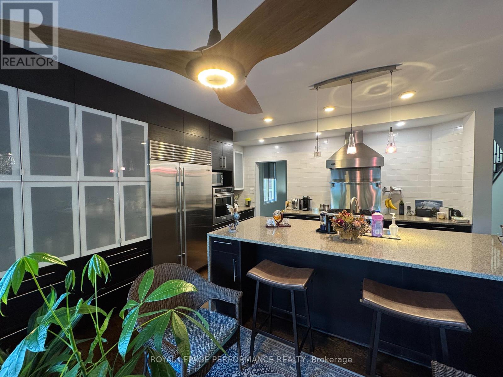 Welcome to this stunning 4 bed, 4 bath residence that seamlessly combines elegance, comfort, & entertainment-ready living. This beautifully designed home offers a spacious and refined layout ideal for modern families. Beautiful hardwood flooring stretches across the entire home, enhancing the sense of warmth & sophistication. At the heart of the home lies a gorgeous chefs kitchen, outfitted with high-end stainless steel appliances including a gas stove & built-in wall oven. Quartz countertops, an oversized central island with seating, & ample custom cabinetry provide both function and flair. This kitchen is a culinary dream and a natural gathering place for family & friends. The main floor offers a thoughtfully designed layout with an elegant formal dining room ideal for hosting dinner parties & holiday gatherings, and a cozy yet spacious family room with gas fireplace providing a welcoming space to unwind. A stunning circular staircase anchors the home's design, while vaulted ceilings add an airy, open feel that enhances the sense of grandeur. Expansive windows flood the interior with natural light, creating a bright & inviting atmosphere throughout. Upstairs, the generously sized primary suite is a true sanctuary featuring hardwood floors, a large walk-in closet, and a spa-inspired ensuite. Three additional generously sized bedrooms offer flexibility for growing families, home offices, or guest accommodation, and a well-appointed full bath. The fully finished basement elevates this home to a new level of entertainment, boasting a wet bar, wine cellar, keg dispensing fridge, theatre room, a sleek 4-piece bath, & abundant storage. Step outside to your backyard oasis, designed for relaxation & enjoyment. The expansive deck is ideal for outdoor dining & lounging. Professionally landscaped gardens surround the space, creating a tranquil & private retreat. Lot size 66.57 x 171.36. Don't miss out, book your showing today! (id:58075)
