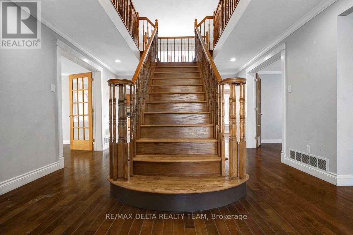 Rarely available spacious 4-bedroom, 4-bath detached home backing onto a private ravine in a prime Ottawa location! Offering over 3,070 sq ft above grade plus a fully finished basement, this brick-front home combines space, privacy, and convenience - just steps to transit, including LRT, and minutes to downtown. The main floor features a stunning oak staircase and hardwood flooring throughout the formal living and dining rooms, a spacious family room with wood-burning fireplace, and a dedicated den/home office perfect for remote work. The eat-in kitchen offers natural wood cabinetry, granite countertops, a large island, and stainless steel appliances, with patio doors leading to the west-facing backyard.Enjoy a fully fenced, pool-sized yard with deck and shed, surrounded by mature trees and backing directly onto a ravine for exceptional privacy and peaceful views. Upstairs, hardwood continues throughout, including a bright loft overlooking the ravine. The generous primary suite features a walk-in closet with organizers, built-in makeup station, and a renovated ensuite with freestanding tub and glass shower. All secondary bedrooms are well-sized and filled with natural light. The finished basement offers a massive recreation room and full bathroom, ideal for a teen retreat, guest space, or future in-law potential, plus ample storage. Updates include: Roof (35-year shingles, 2009), Furnace & A/C (2021), owned hot water tank, new garage doors, and newer interlock for added curb appeal.Double garage and double-wide driveway accommodate up to 6 vehicles. Rare ravine lot offering space inside and out, with easy access to transit, amenities, and downtown. 24-hour irrevocable on all offers. (id:58075)