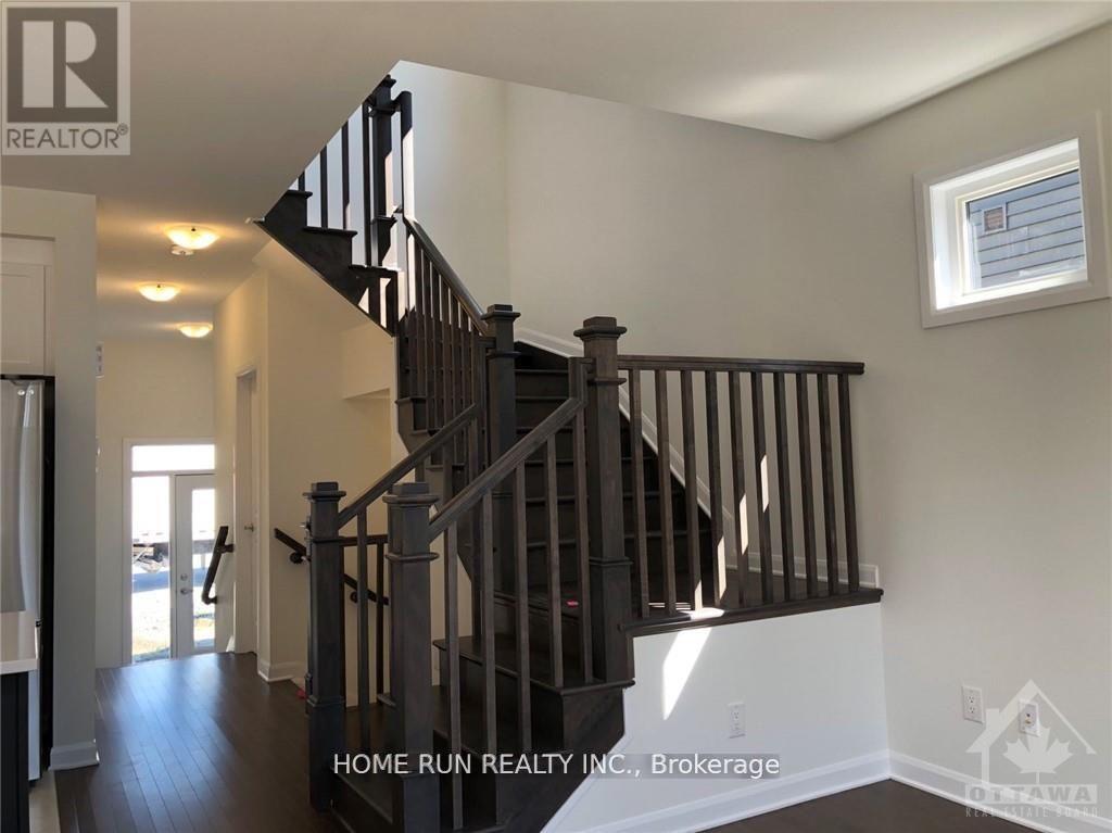 This beautiful open concept home in sought after community of Barrhaven. Amazing 3bed/2.5bath END-UNIT townhouse with 9ft celling on the main floor and finished basement. Ceramic tiles on the kitchen and bathrooms and hardwood flood throughout the first floor. Large kitchen with Granite counter top and pantry room, high-end stainless-steel appliances and island with breakfast bar, spacious dining room and living room. Second floor offer large primary bedroom with 3-piece en-suite and walk-in closet, 2 other good size bedrooms, full 3-piece bathroom and laundry. Finished basement with family room, storage room, and lot of storage room in the unfinished area. Next to park, and close to schools, Costco, Home Depot, HWY, and restaurants. Available June 1st. book your showing today! (id:58075)