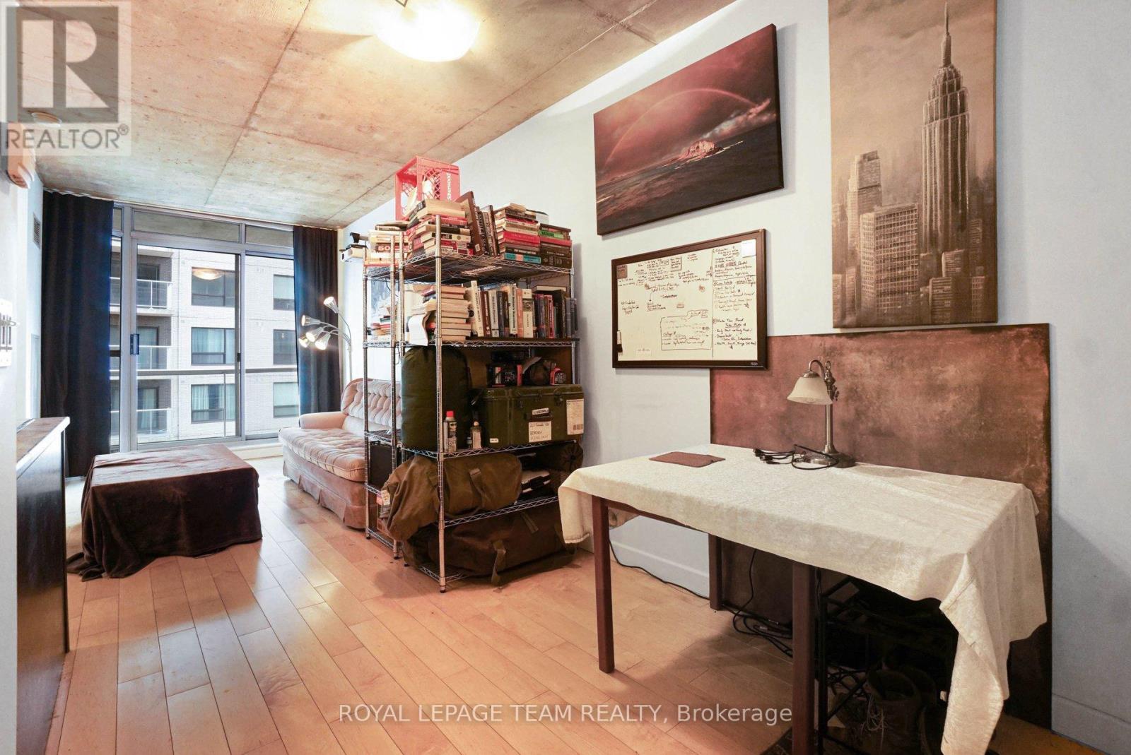Welcome to urban living at its best in the heart of the Byward Market. This stylish 1 bedroom loft-style condo offers an open concept layout with lovely hardwood flooring, kitchen island and quality bathroom finishes. Floor to ceiling windows flood the space with natural light and lead to an oversized balcony-perfect for relaxing. All utilities (heat, hydro and water) are included in one simple condo fee, making ownership easy and predictable. While no parking is included, affordable rental options are available within the building and nearby. Enjoy unbeatable walkability-steps to Rideau Centre, transit, restaurants and nightlife. Building amenities include a lounge, gym, terrace with BBQ and more. An excellent investment. Overnight notice for showings appreciated !! (id:58075)