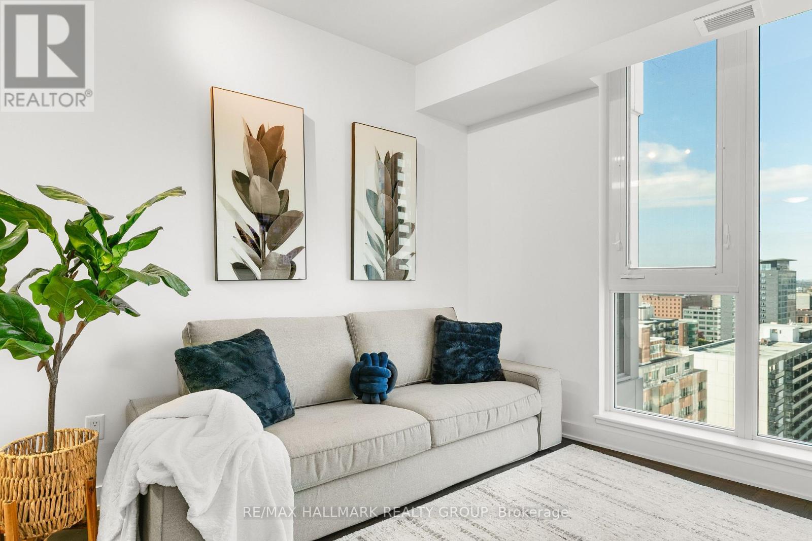 An urban dwellers dream! Welcome to this stylish Fully furnished 1-bedroom, 1-bathroom condo in the sought-after Tribeca building in Centretown, Ottawa. This fresh, modern unit features a thoughtfully designed kitchen with ample cabinetry, sleek counters, tile backsplash, and 4 stainless steel appliances that maximize functionality. Hardwood floors flow seamlessly through the open-concept living space, where floor-to-ceiling windows showcase sweeping views of downtown. The spacious bedroom offers excellent closet space and natural light, while the bathroom boasts a deep soaker tub and in-unit stacked laundry for convenience. Parking and storage locker included! Residents enjoy access to exceptional amenities including a fitness centre, indoor pool, and more. Steps from Farm Boy, across from the pharmacy, close to the LRT, shopping, dining, and everything downtown living has to offer. Perfect for professionals, students, or investors. Condo fees cover building insurance, heat, water/sewer, caretaker, management, recreation facilities, and snow removal. (id:58075)